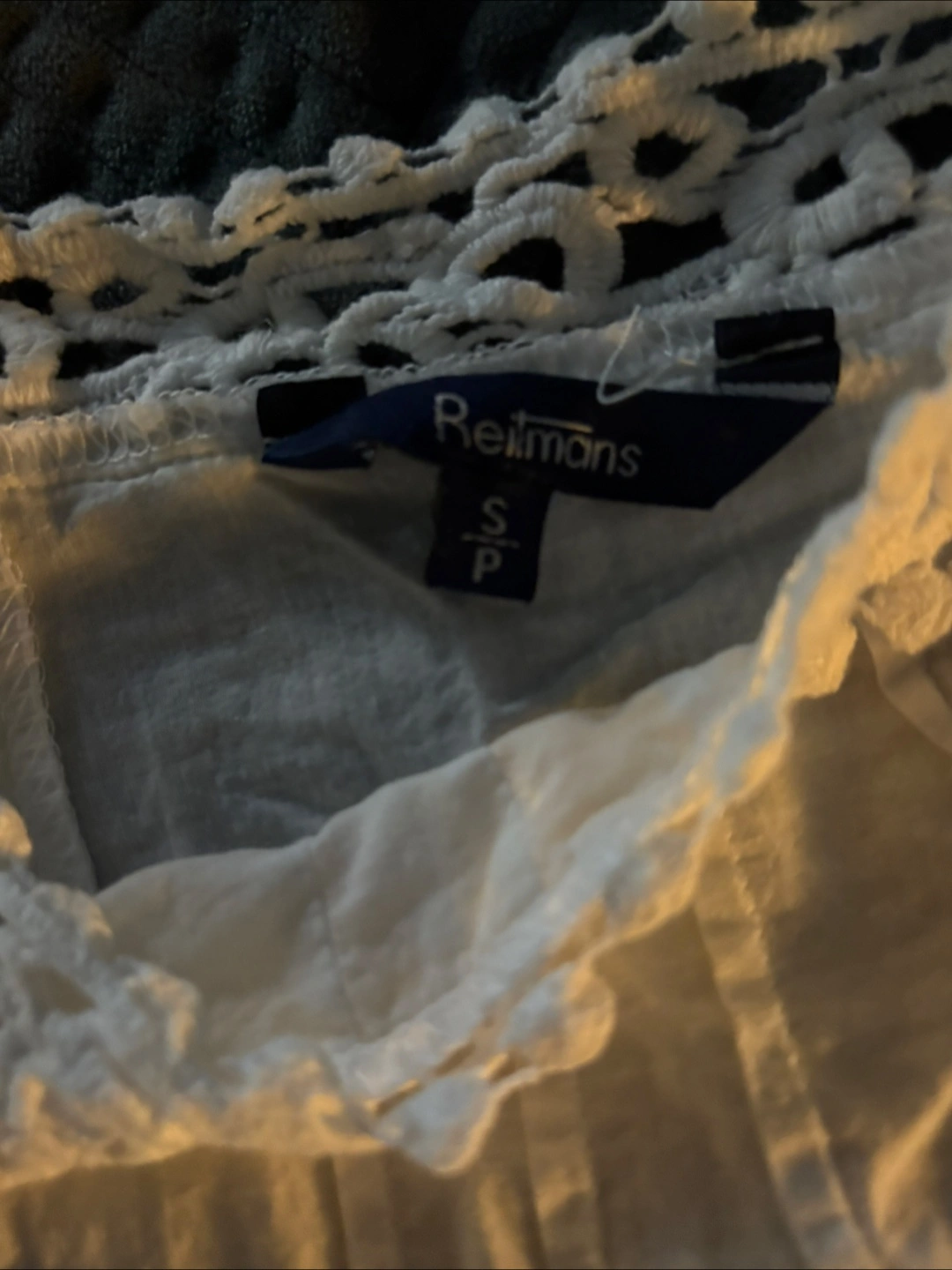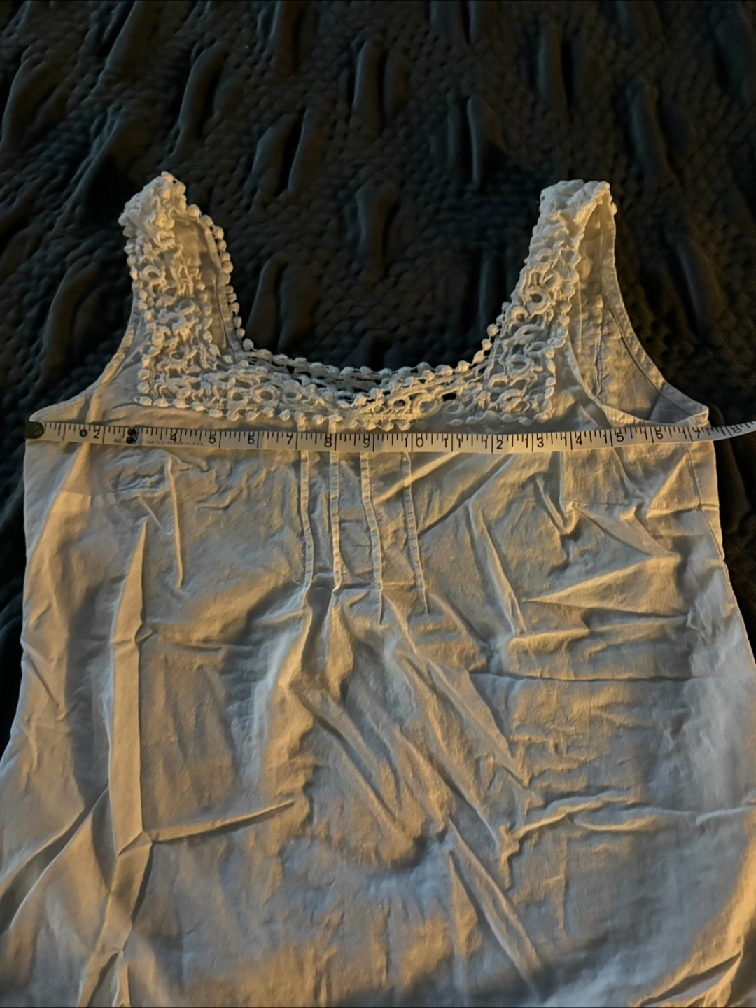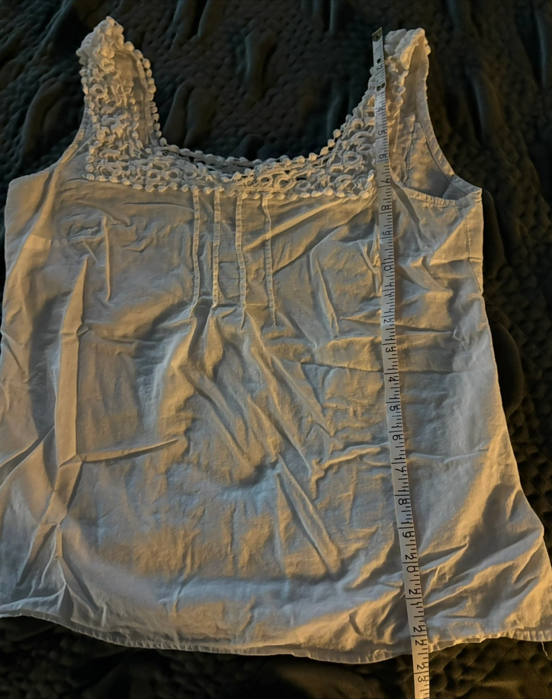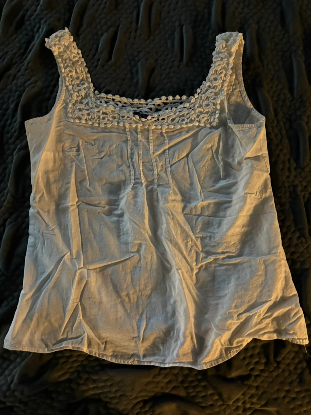 Selling a cute Reitmans white tank top! It's a size small and made of 100% cotton. The top has a lovely crochet design around the neckline. Perfect for a casual summer day!