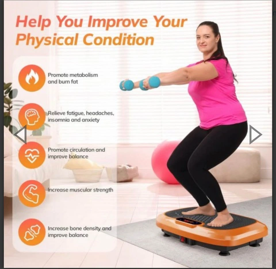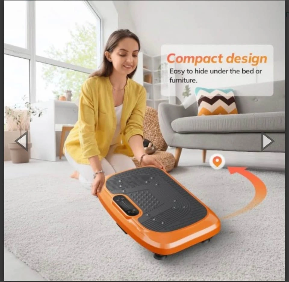 This is brand new in box, received as an annual party gift. It offers full-body vibration training with 20 adjustable speeds and auto programs. The anti-slip surface provides stable support up to 330 lbs. Includes remote and resistance bands. Speed Levels: 1–20. Display: LED Touch Panel. Max Weight Capacity: 330 lbs / 150 kg. Dimensions: 55 cm x 35 cm x 11.4 cm.