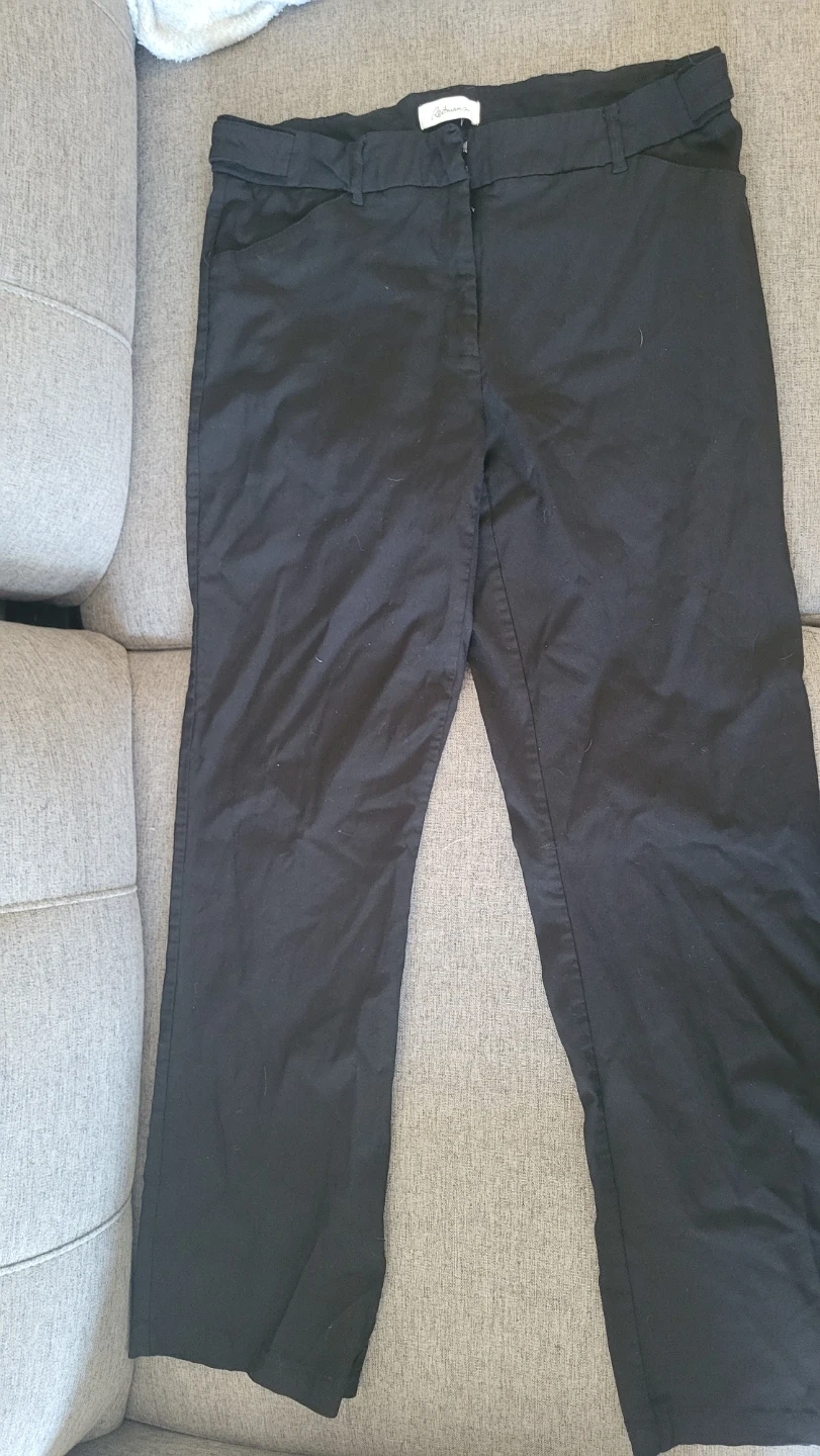 Classic black bootcut dress pants from Talbots. They feature a mid-rise fit and are made from a comfortable, durable fabric. These pants are perfect for everyday wear or for dressing up for work!
