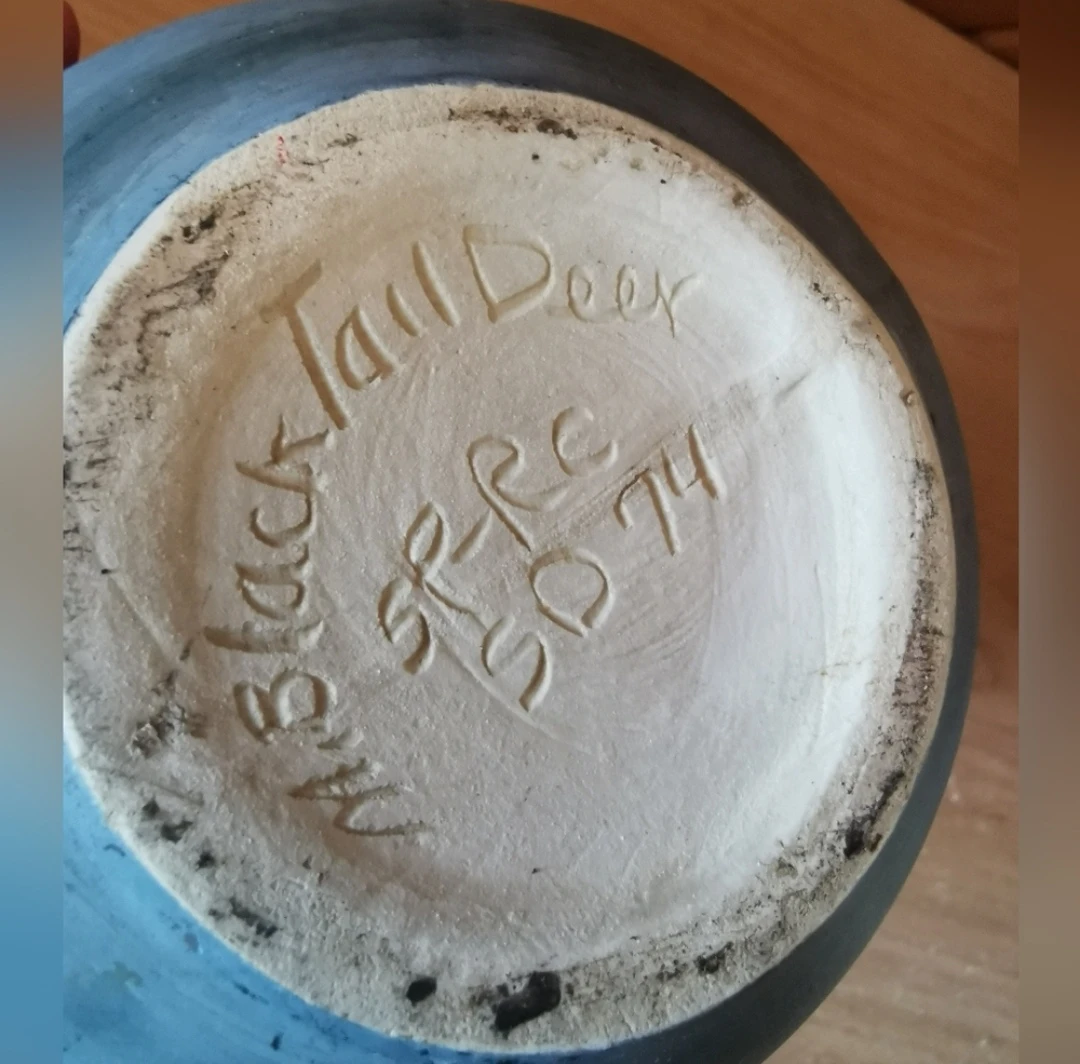 Native American M Blacktail Deer Artist Signed Vintage Pottery Vase.