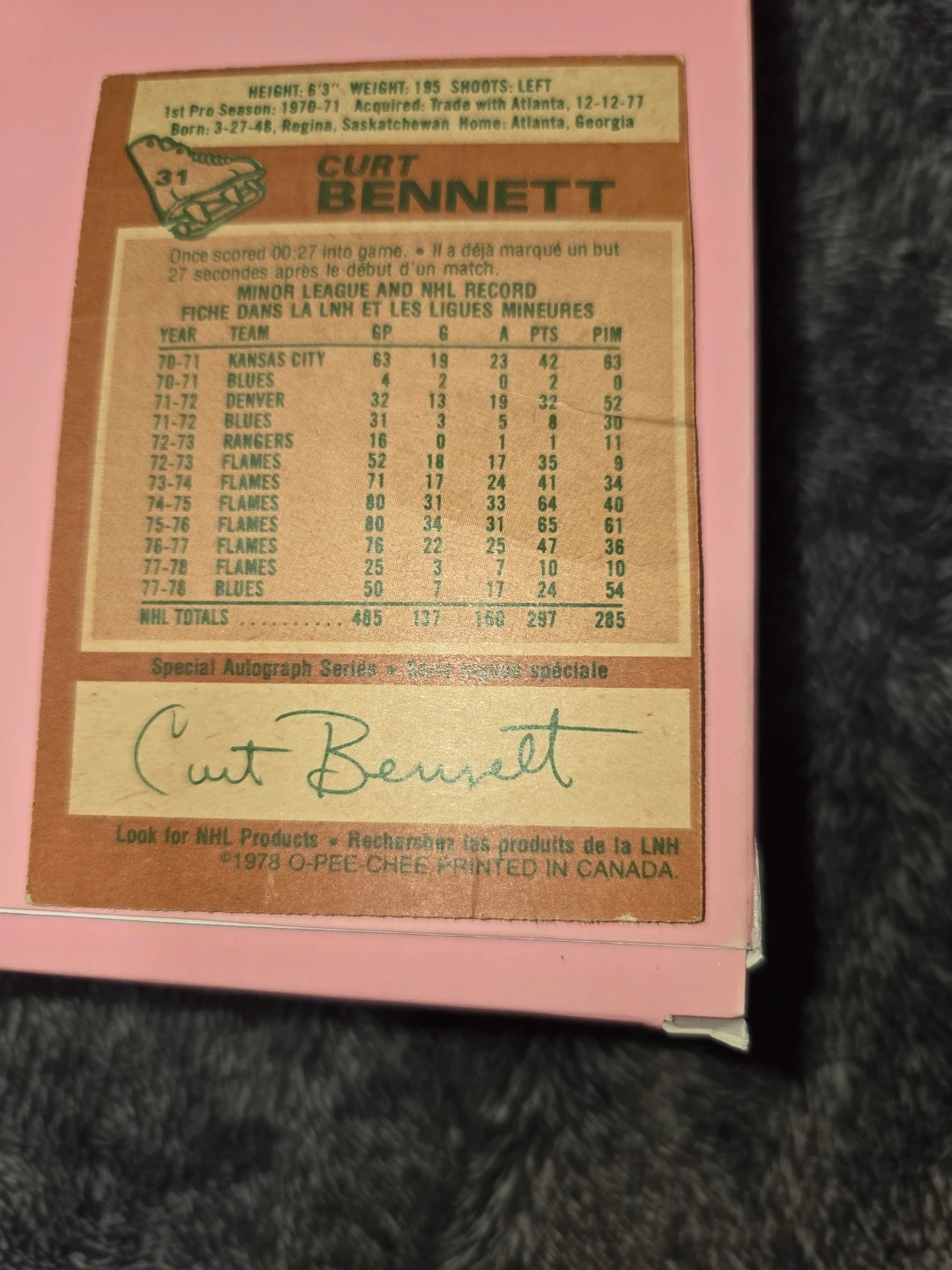 Curt Bennett 1978-79 O-Pee-Chee Hockey Card with stats