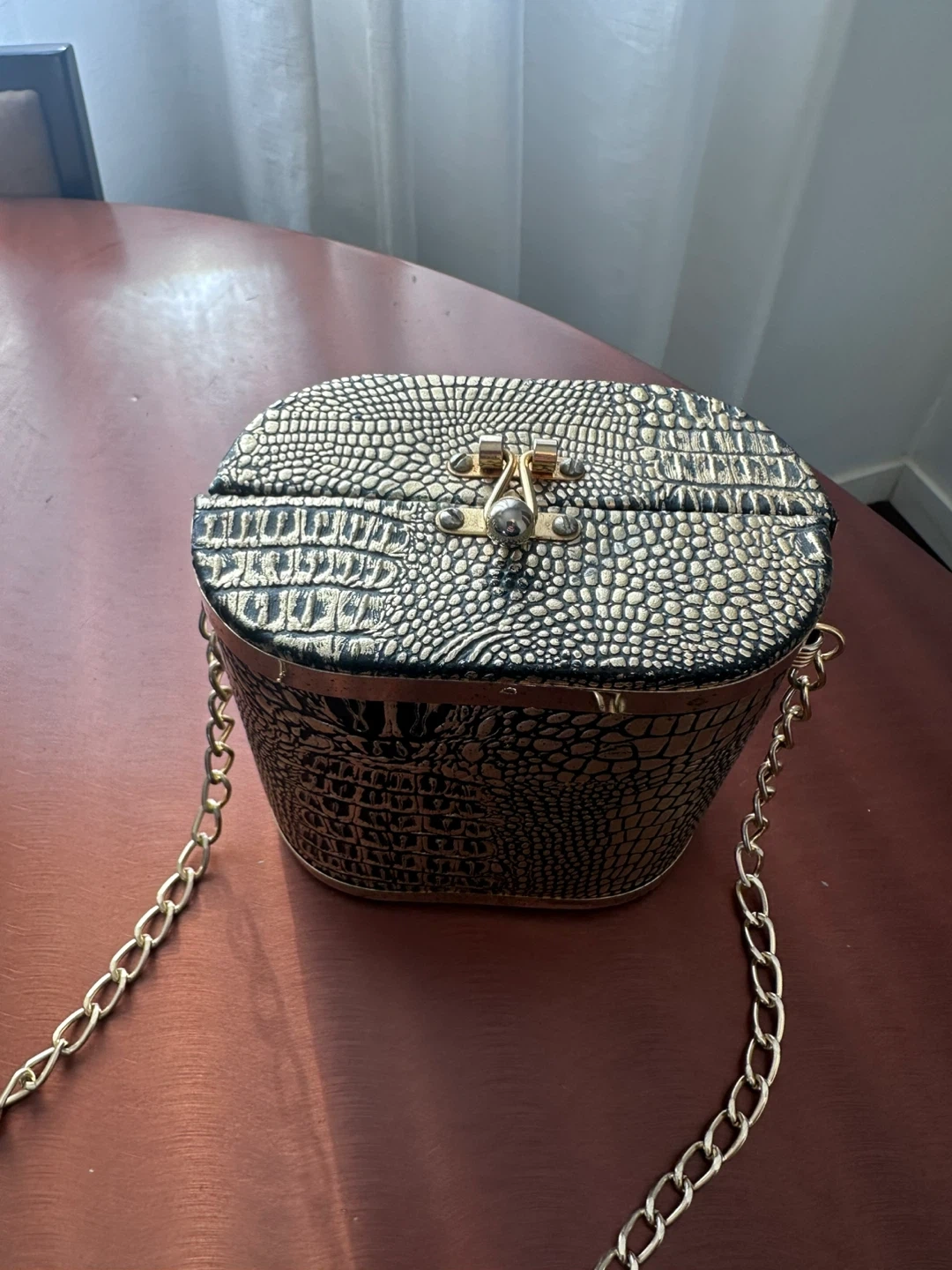 Vintage Gold Crocodile Pattern Purse with Gold Chain