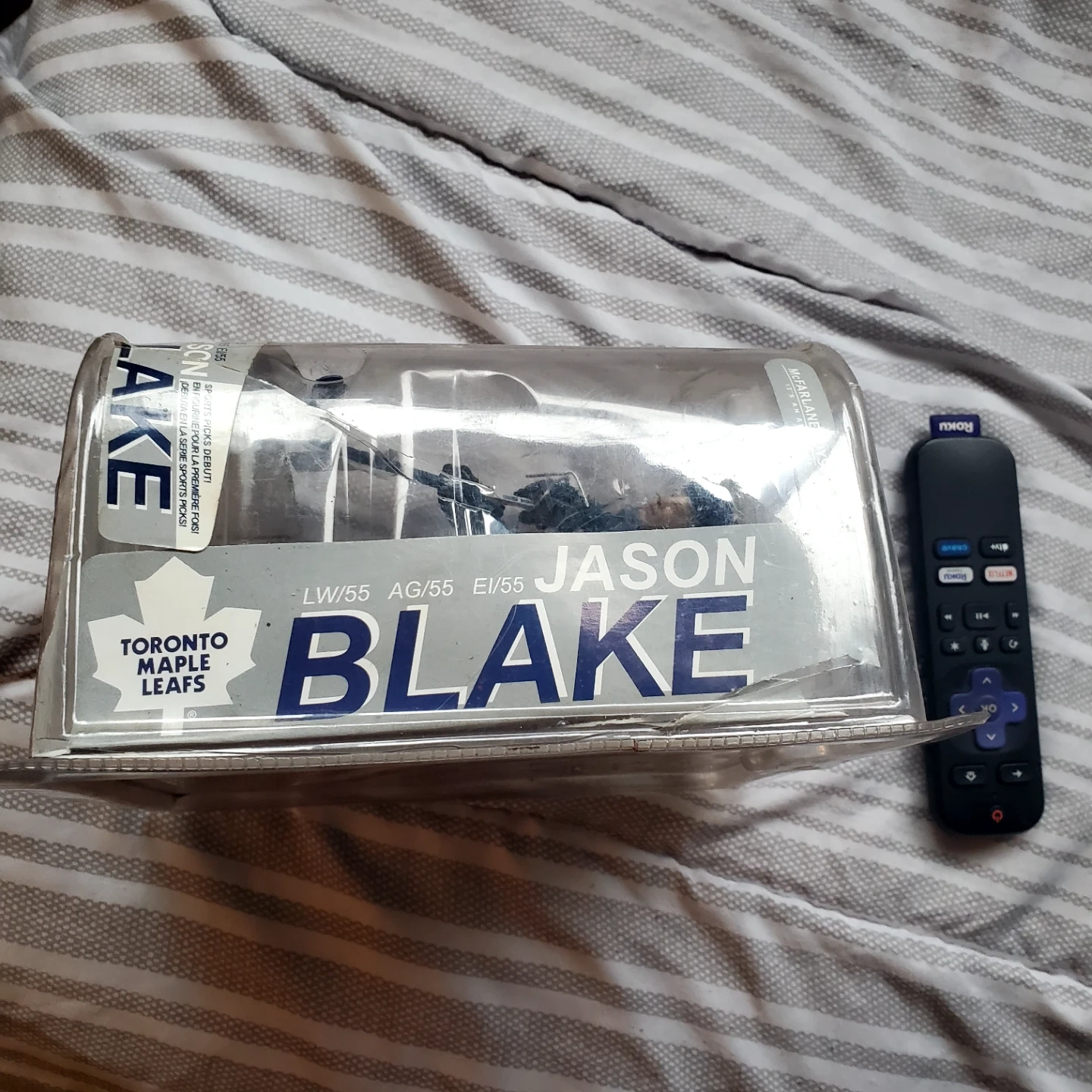 This is a McFarlane Toys Toronto Maple Leafs action figure featuring Jason Blake. It's from the 2006-07 series. The figure comes in its original packaging.