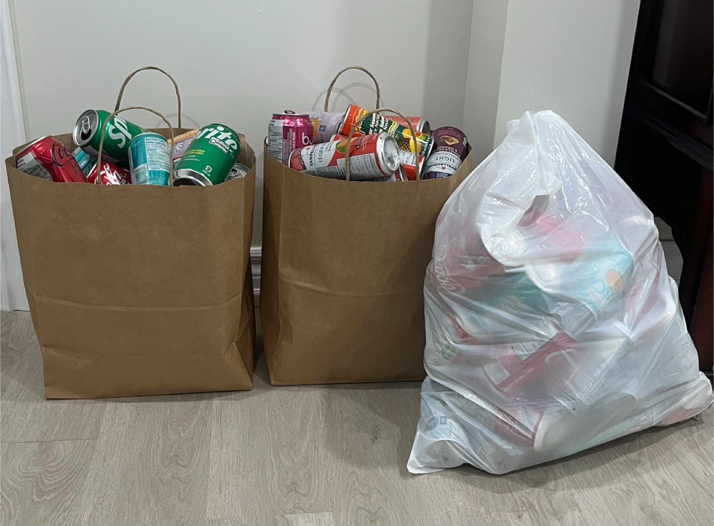 Bags of assorted pop cans for recycling