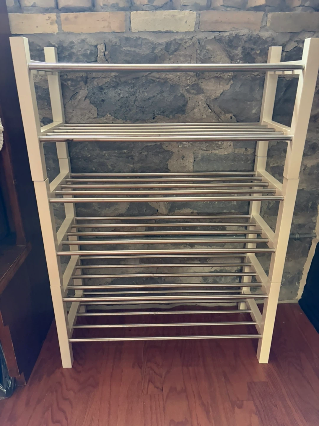 $40 for all three z It's made with a durable wood frame and metal shelves, perfect for organizing your footwear. This rack is great for keeping shoes off the floor and easily accessible.