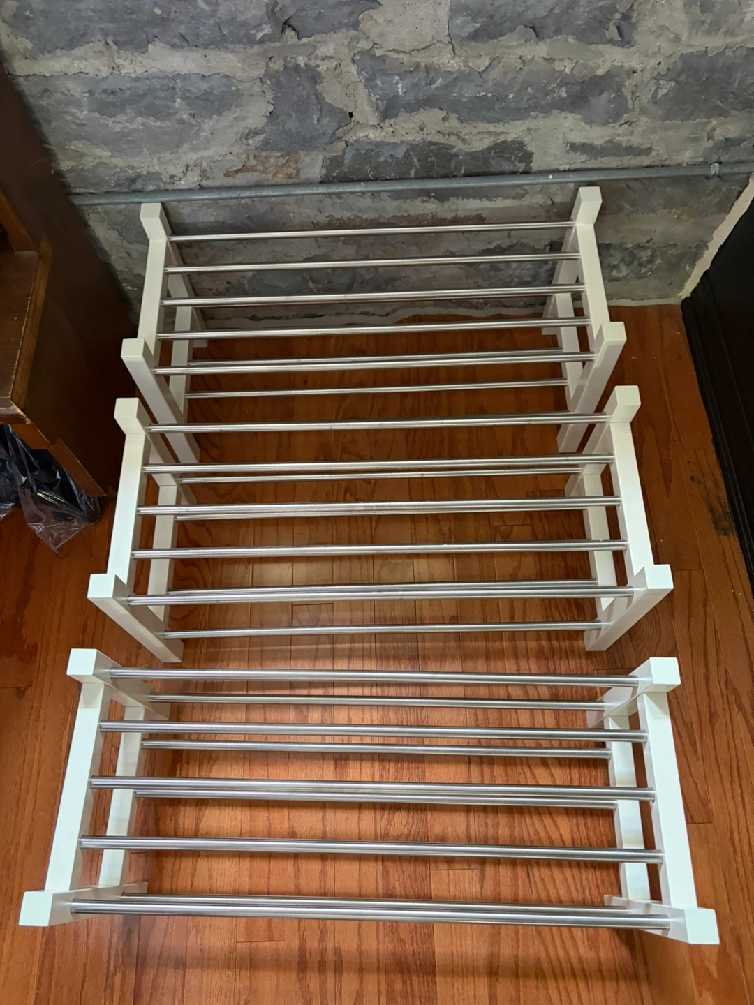 $40 for all three z It's made with a durable wood frame and metal shelves, perfect for organizing your footwear. This rack is great for keeping shoes off the floor and easily accessible.