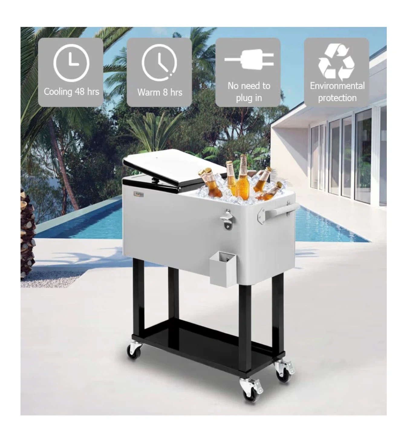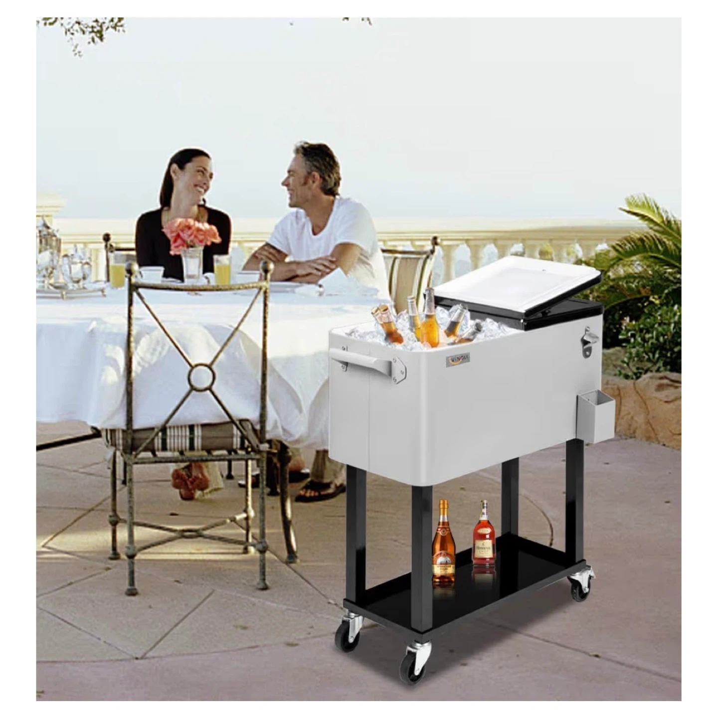 Rolling Cooler Cart with Bottle Opener