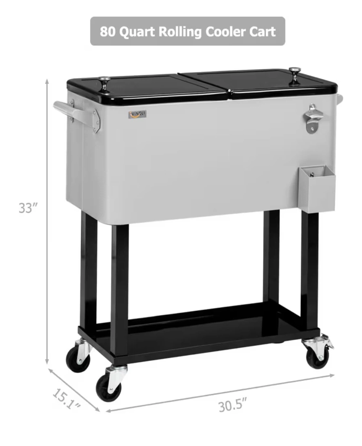 Rolling Cooler Cart with Bottle Opener
