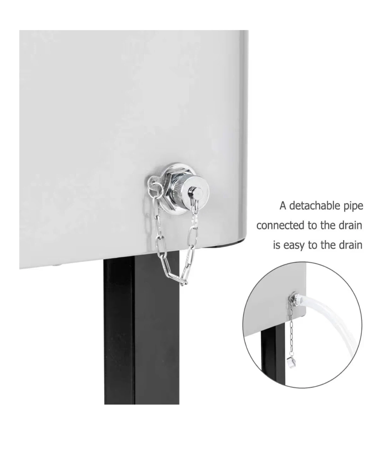 It also has a lid handle, bottle cap catcher, and bottom tray for additional storage. The detachable pipe makes it easy to drain. Move it anywhere or lock it to keep it in place with the 2 casters with lock and 2 casters without lock