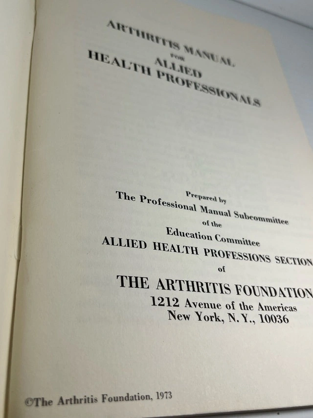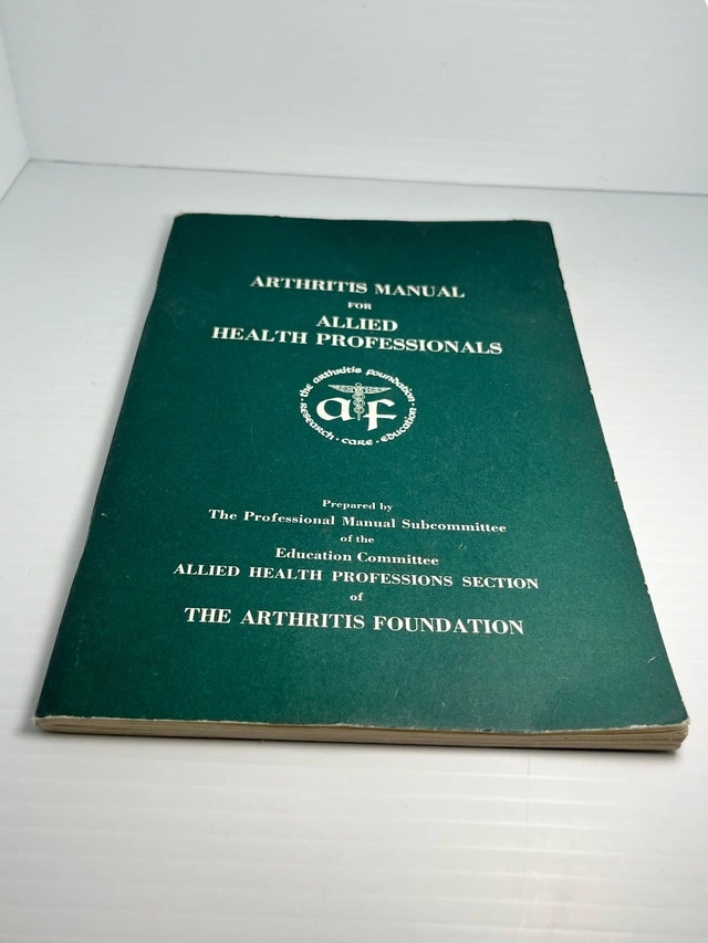 Explore the comprehensive "Arthritis Manual for Allied Health Professionals" from The Arthritis Foundation, copyright 1973. This vintage manual offers valuable insights into arthritis care and education. Given its age, the manual shows signs of wear but remains a wealth of information for healthcare enthusiasts. Whether you're a collector of medical literature or a healthcare professional seeking historical perspectives, this manual is a unique find. If the ad is up, it's available, pick up only! Cash accepted.