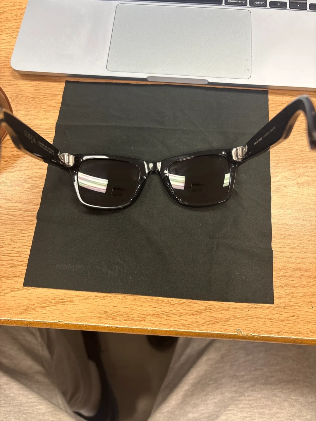 Selling a pair of Ray-Ban Meta smart glasses in black. They come with the original case. These glasses are in great condition and ready for a new owner!