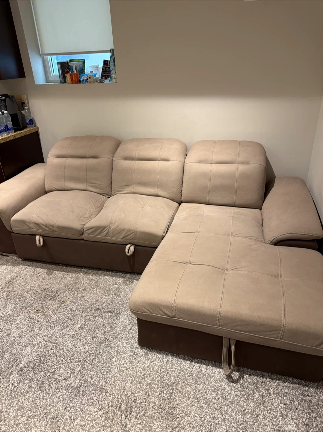 Buy & SellTan Sectional SofaTan Sectional Sofa$180A comfortable tan sectional sofa with a chaise lounge. It has plush cushions and a sturdy build. This sofa is great for relaxing in your living room.ConditionGoodWHERE TO MEETHome pick upView MapSELLERverifiedShaqLake Wilcox650 reviews1 chats·0 favorites·104 viewsSEND CHAT TO SELLERHi Shaq! I’m interested in your listing.Hi Shaq! I’m interested in your listing.Get the Karrot app to chatSign In to chat