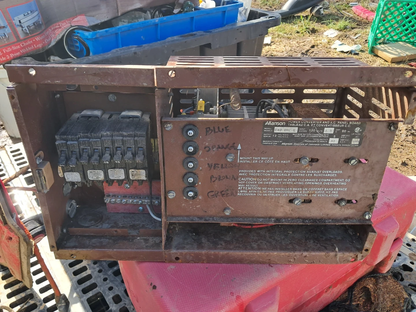 This Allanson D40-BRC-E unit is a power converter and A.C. panel board. It has a 120 volt input and a total output of 40 amps. Manufactured by Allanson Division of Jannock Limited.