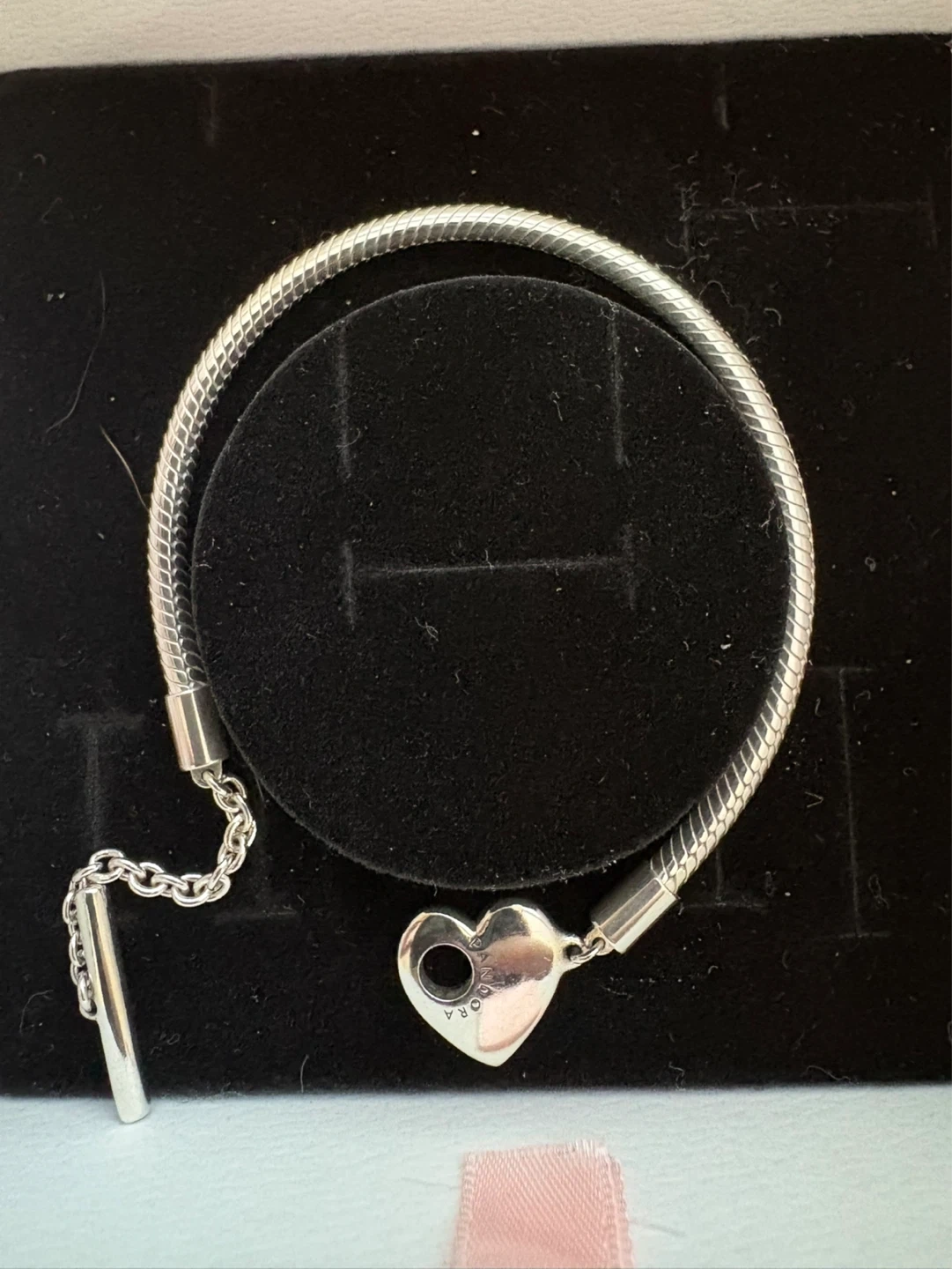Buy & SellPandora Silver Heart Clasp BraceletPandora Silver Heart Clasp Bracelet$52Pandora sterling silver snake chain bracelet. It's designed with a heart-shaped clasp. Comes with original Pandora box,tissue paper and bag.ConditionNewSize7”BrandPandoraWHERE TO MEETAurora OntarioView MapSELLERverifiedLbsAurora Centre N620 reviews1 chats·0 favorites·19 viewsSEND CHAT TO SELLERHi Lbs! I’m interested in your listing.Hi Lbs! I’m interested in your listing.Get the Karrot app to chatSign In to chat