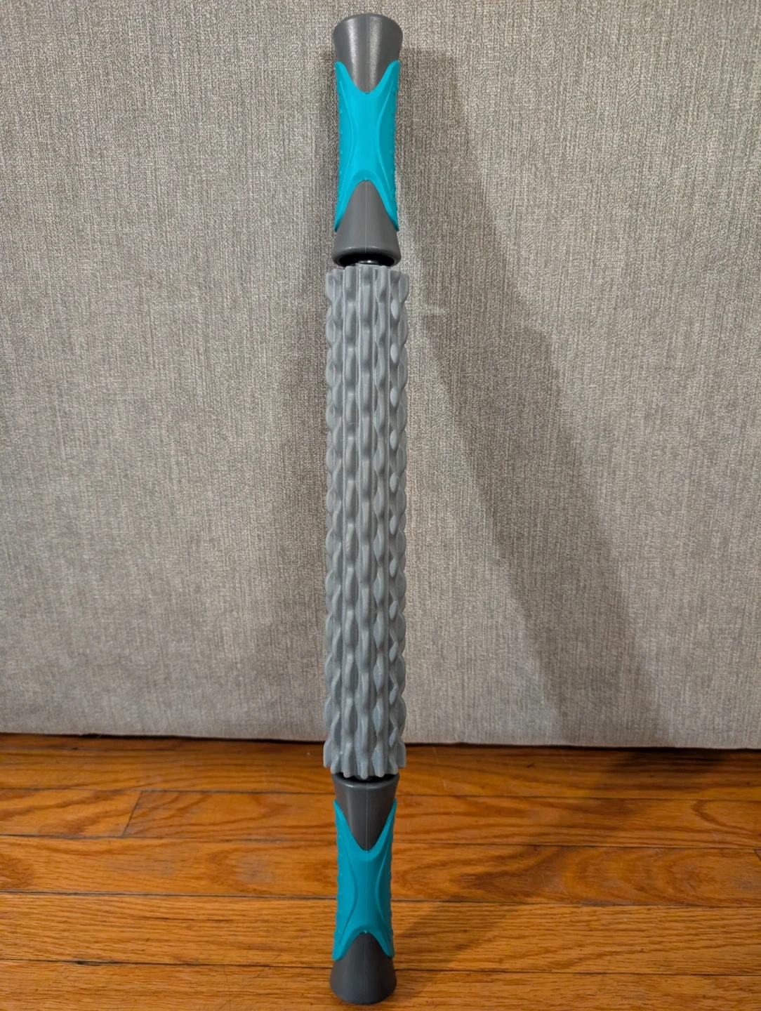 Here's a massage roller stick, perfect for relieving muscle tension and soreness. It's in great condition and ready to help you relax after a workout or a long day! The textured surface provides a deep tissue massage, targeting specific muscle groups. It's lightweight and portable, so you can take it with you wherever you go