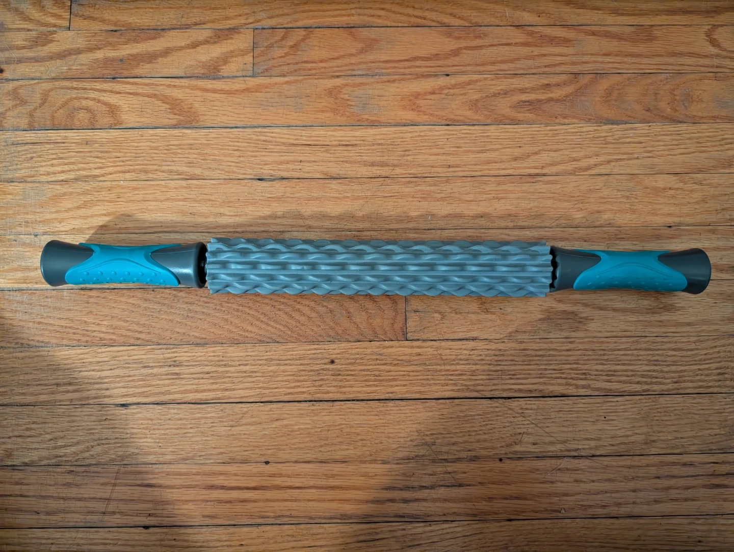 Here's a massage roller stick, perfect for relieving muscle tension and soreness. It's in great condition and ready to help you relax after a workout or a long day! The textured surface provides a deep tissue massage, targeting specific muscle groups. It's lightweight and portable, so you can take it with you wherever you go