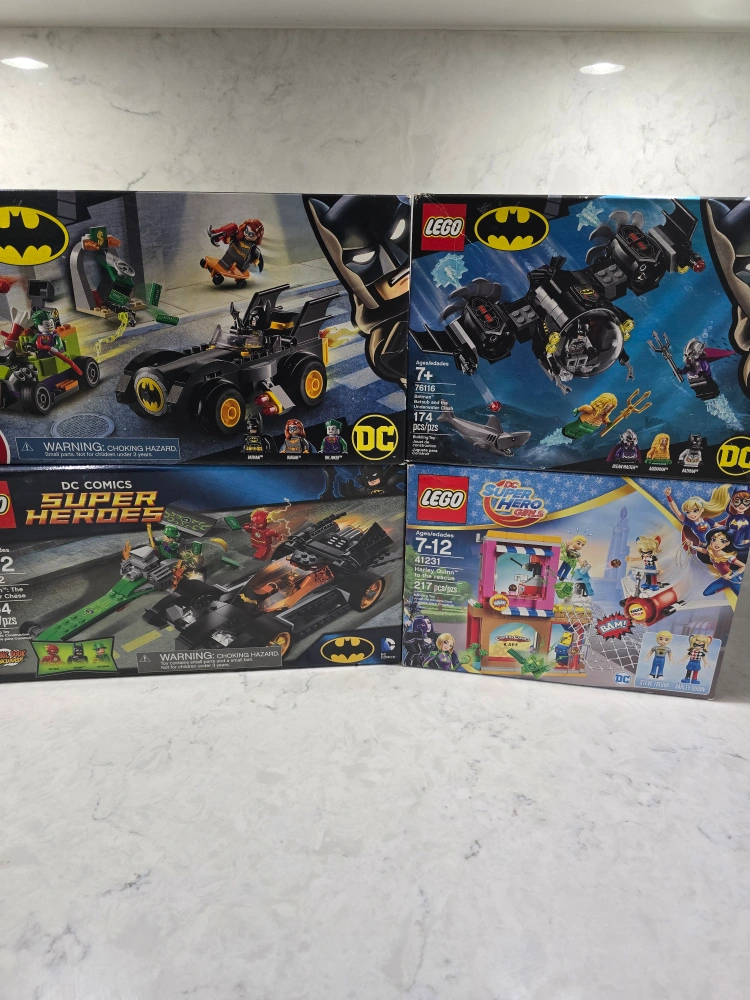 Selling a collection of LEGO DC Comics Super Heroes sets. Includes sets like 76116 Batmobile and The Pursuit of Joker and 41231 Harley Quinn to the rescue. Great for ages 7+