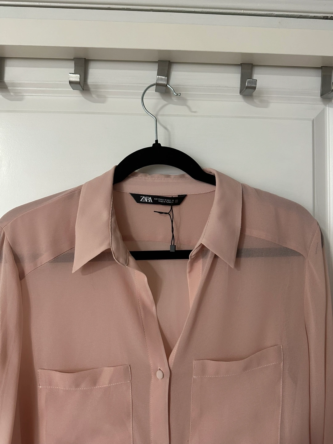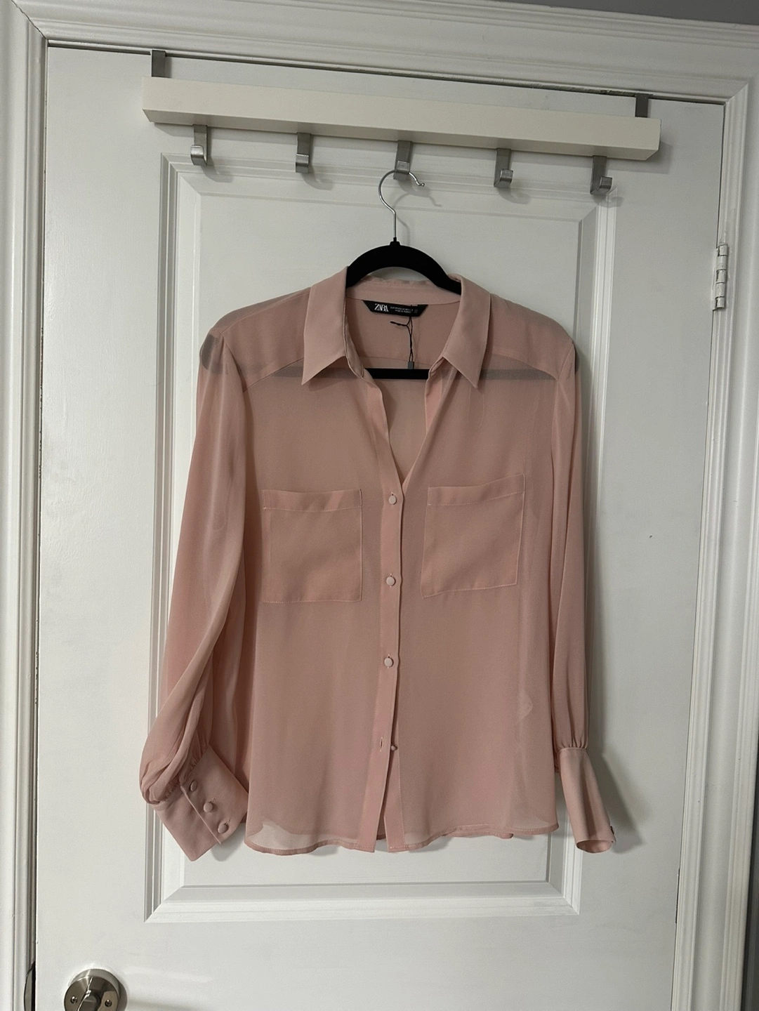 NEW* ZARA Pink Sheer Button-Down Blouse