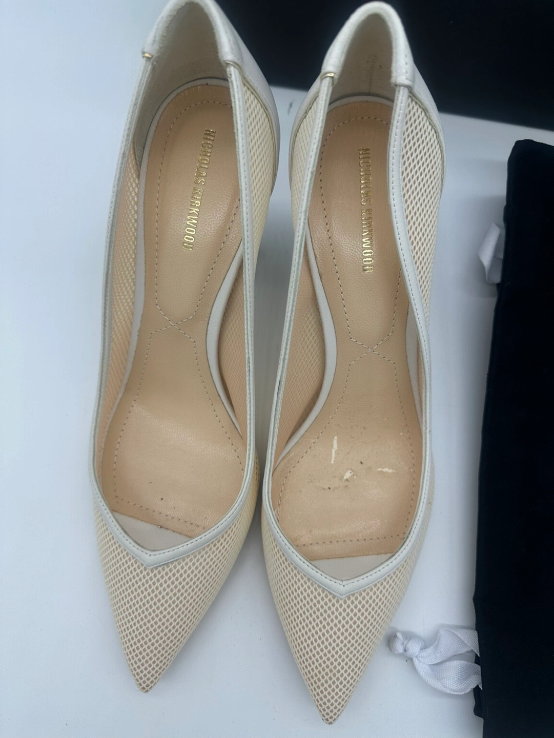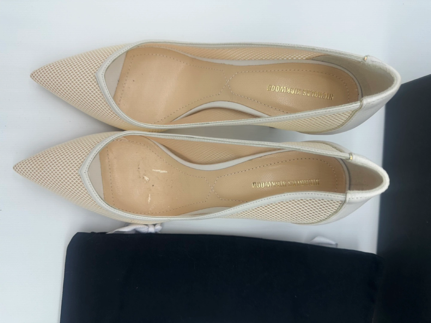 Nicholas Kirkwood white and gold Mesh kitten heels