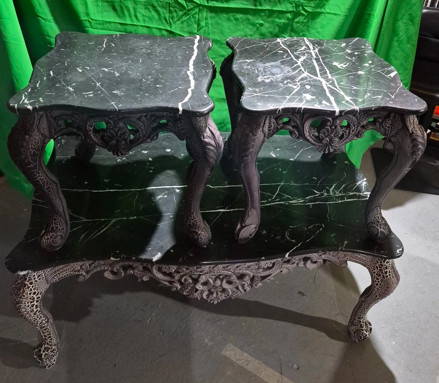 3 piece of ornate marble top side tables