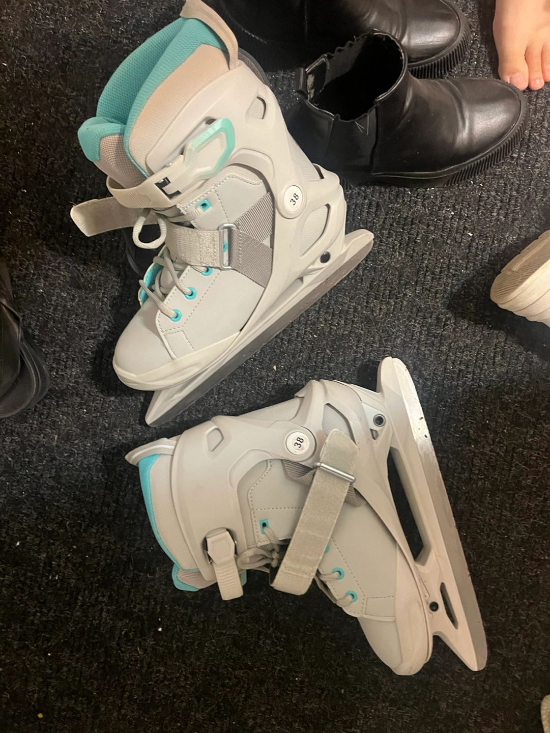16Grey ice skates with blue accents. Size 38. Just used twice