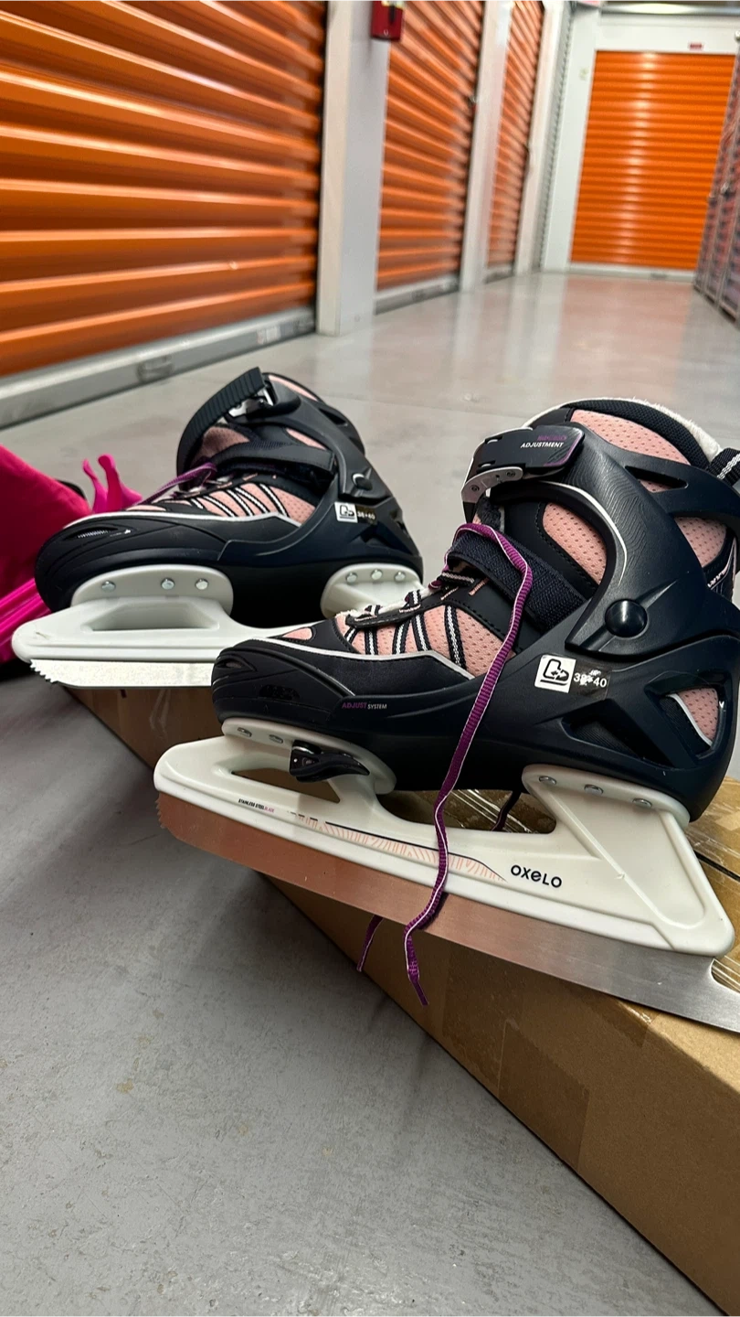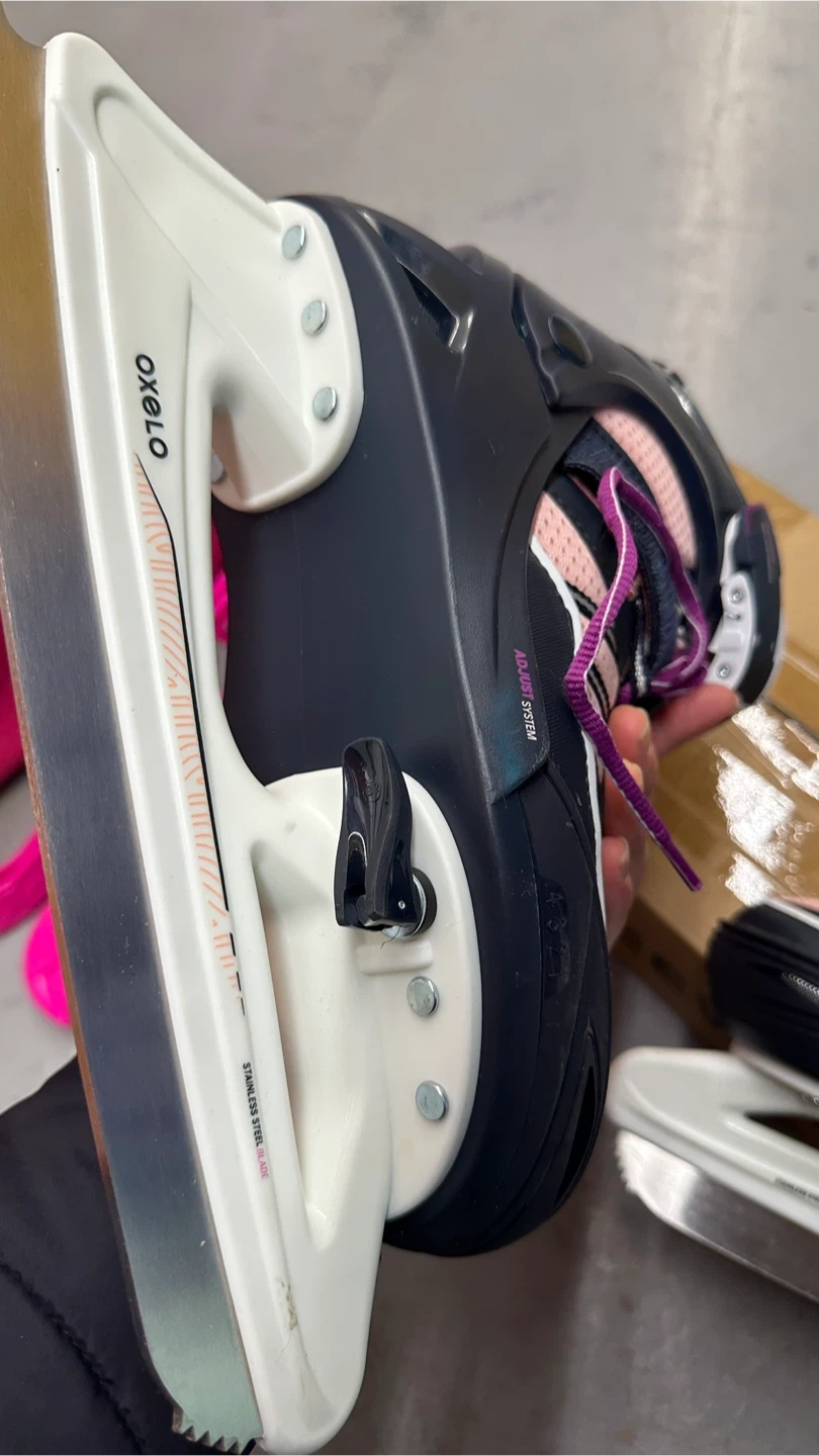 10Selling a pair of Oxelo ice skates. On Decathlon listed as Kids' Ice Skates with 4 Adjustable Sizes, FIT 500 Warm! Were used by an adult with bo issues. They are in good condition and ready for some fun on the ice. Perfect for beginners or experienced skaters alike. They come with a pink carrying bag and pink skate guards!