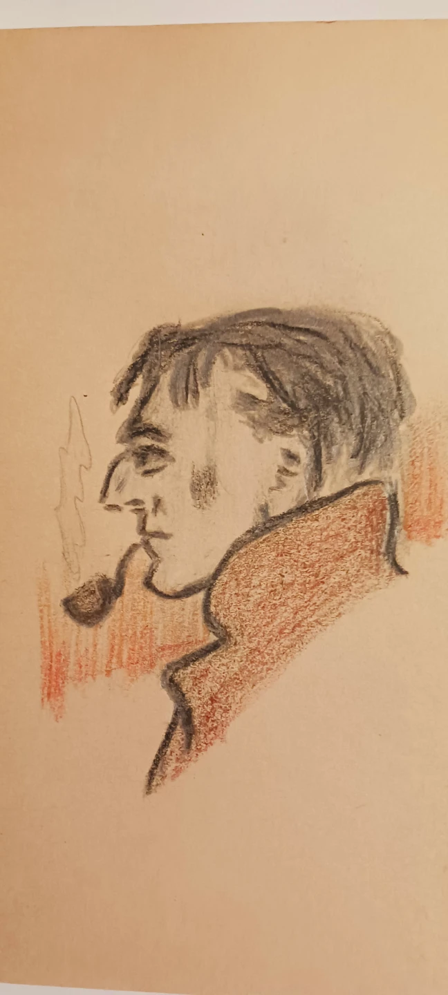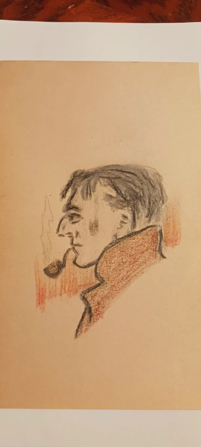 Old Vintage 1940s Authentic Artwork Drawing. Old Vintage Charcoal Drawing - Portrait of a Man with a Pipe. 8"×6". It is not framed, selling as is. ALL MY PRICES ARE NEGOTIABLE !!