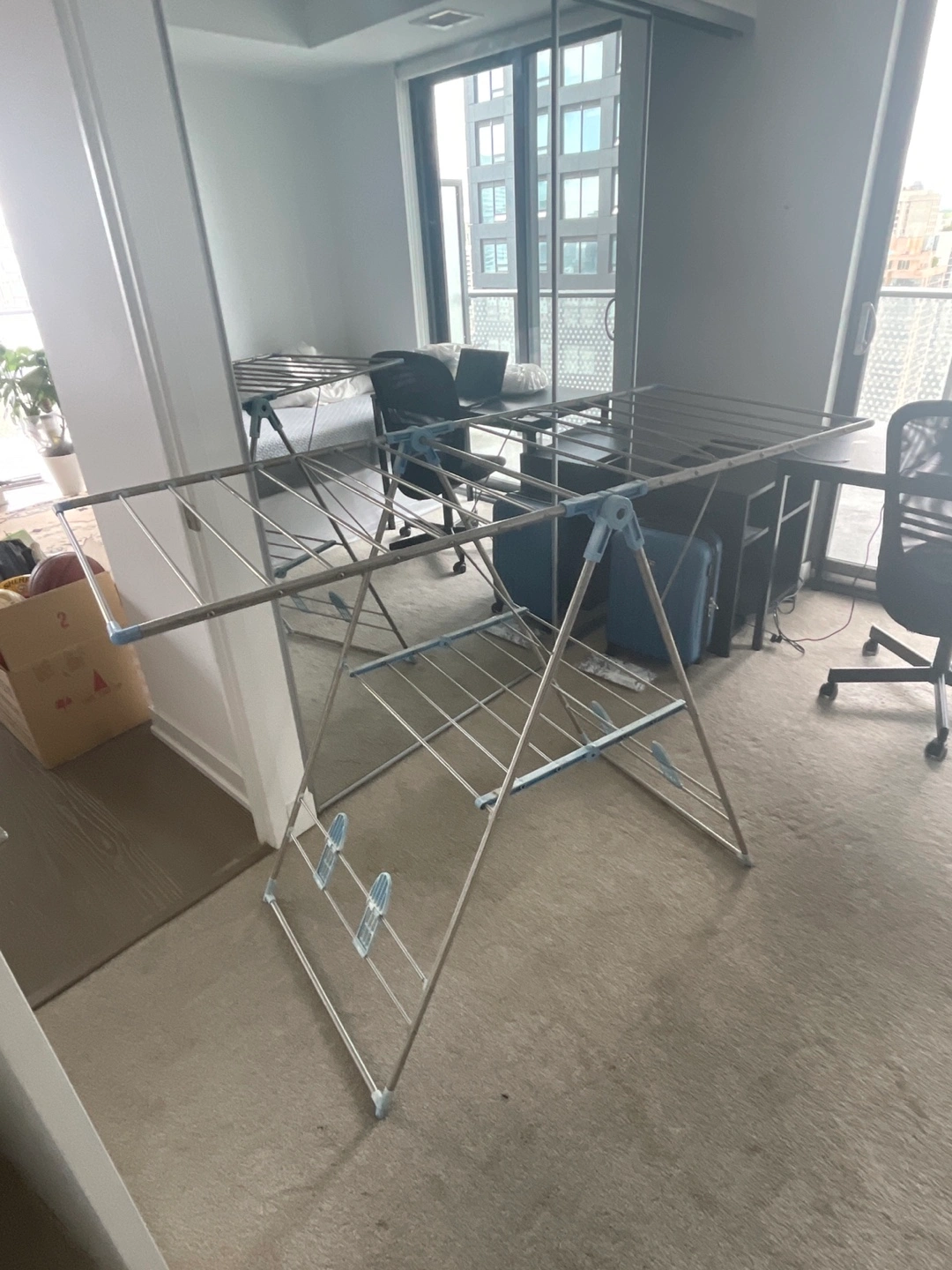 Selling a handy folding clothes drying rack! It's in great shape and perfect for apartments or smaller spaces where you need to dry clothes indoors. Folds up easily for storage when not in use, too.