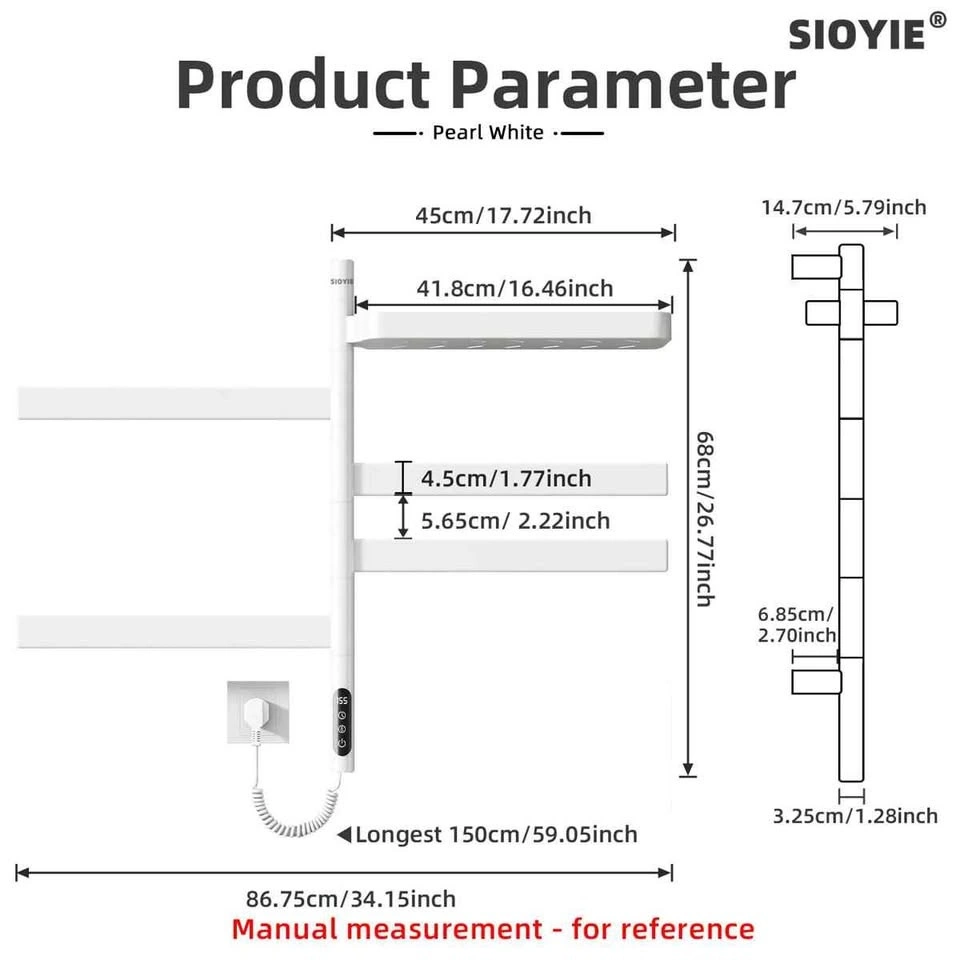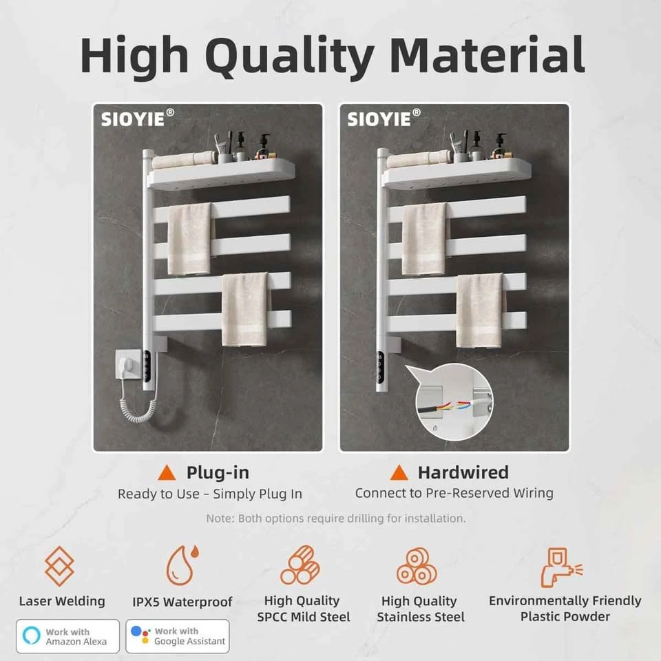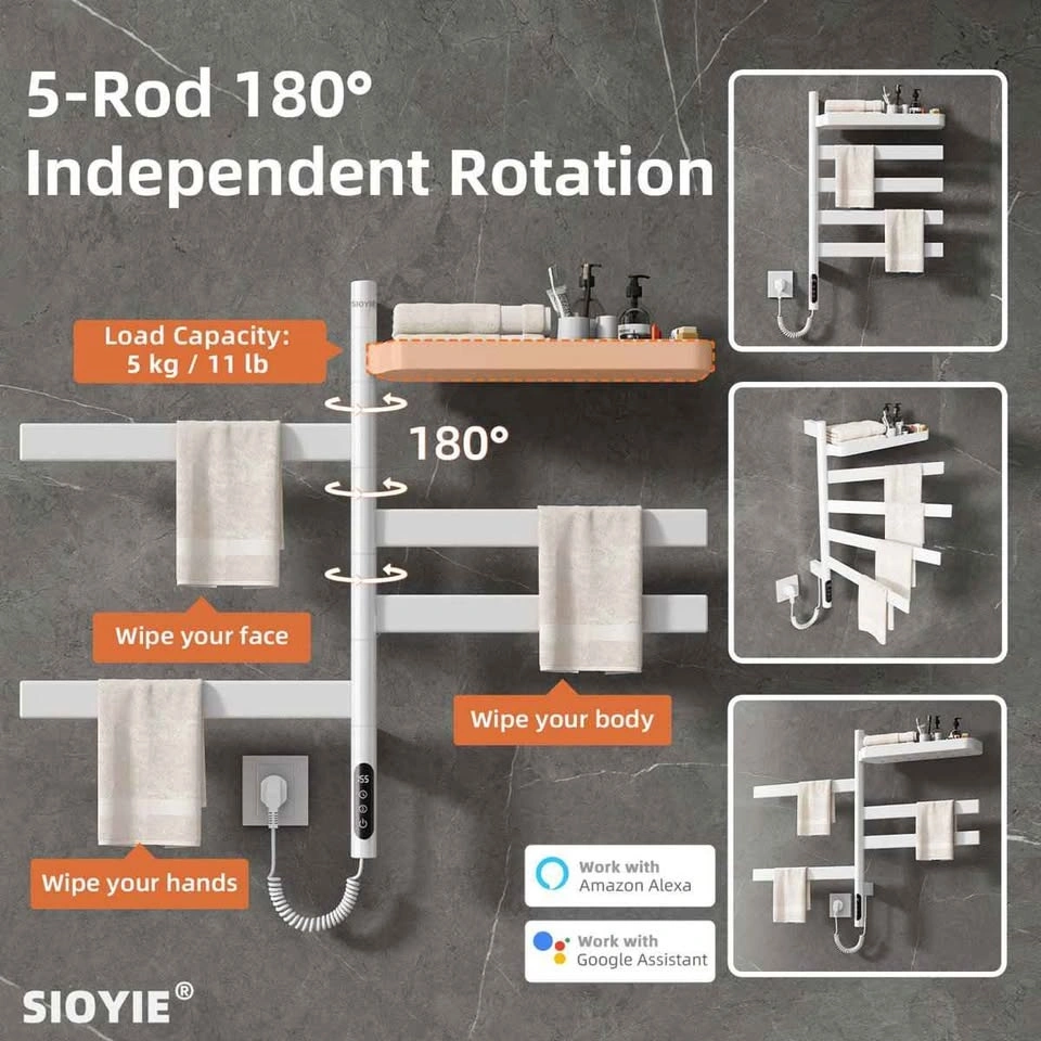 SIOYIE Smart Towel Warmer 5-Rod Rotating White