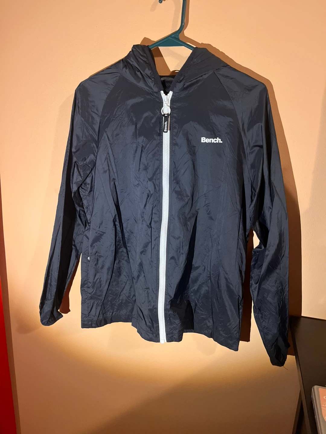 Bench. black hooded jacket. Lightweight windbreaker style. Size S. It's perfect for layering or quick outdoor activities.