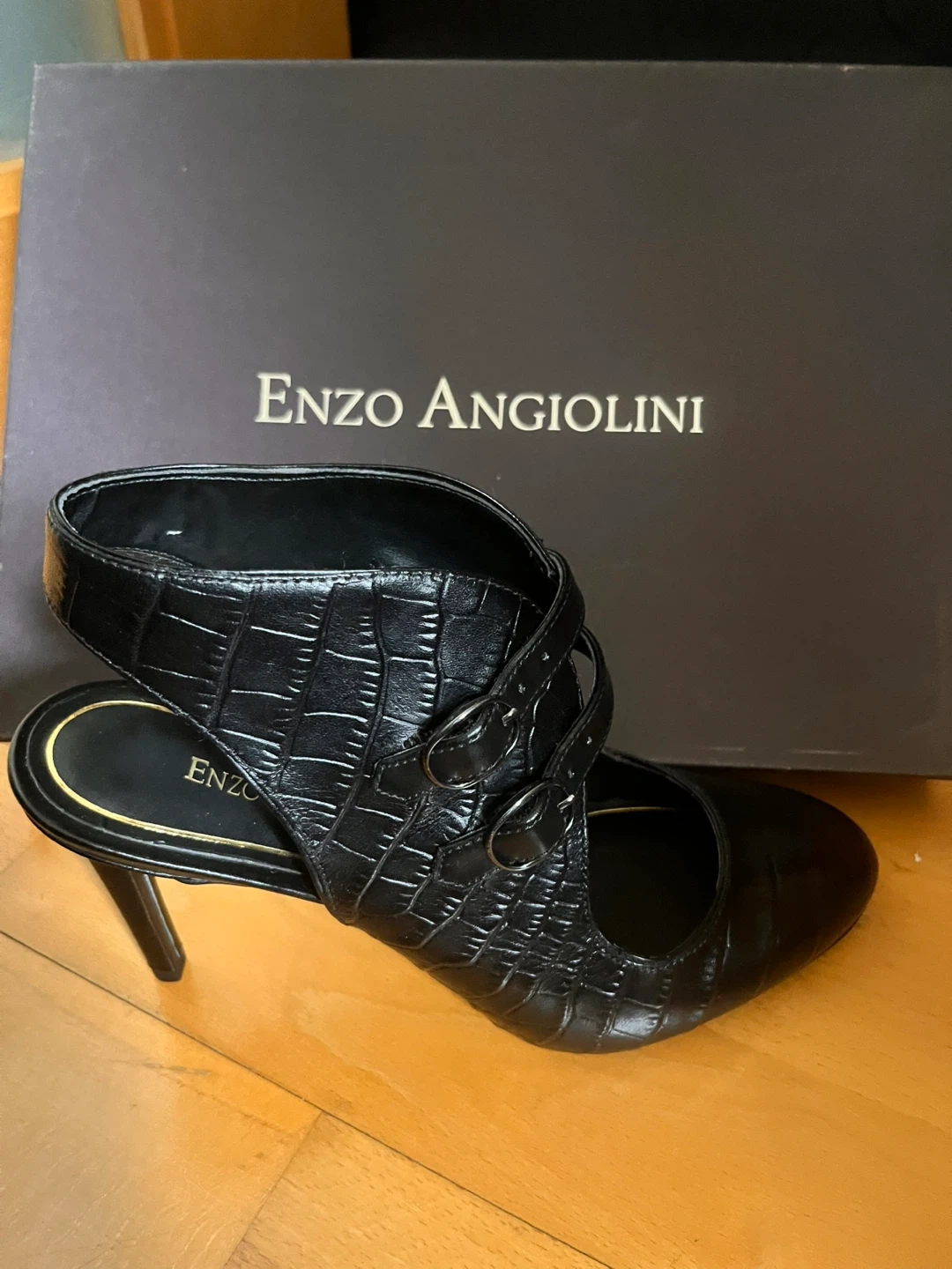 Enzo Angiolini women's heels in a black croc-embossed finish. Features a slingback strap with buckle closure. Size 7 M. Includes original box.