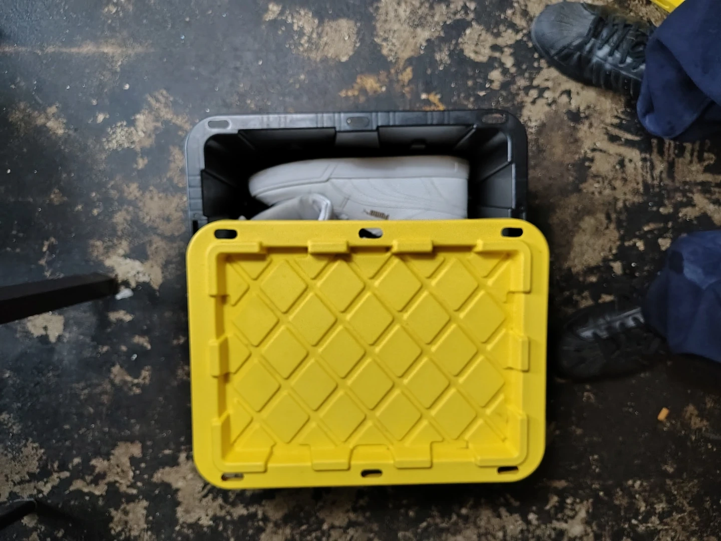 Black Storage Bin with Yellow Lid