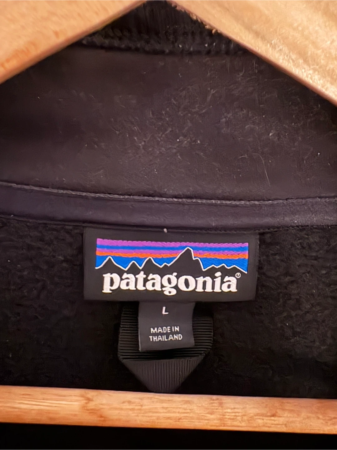 Patagonia black fleece pullover. Made with 100% recycled polyester. Size large. Great for layering during cooler weather!