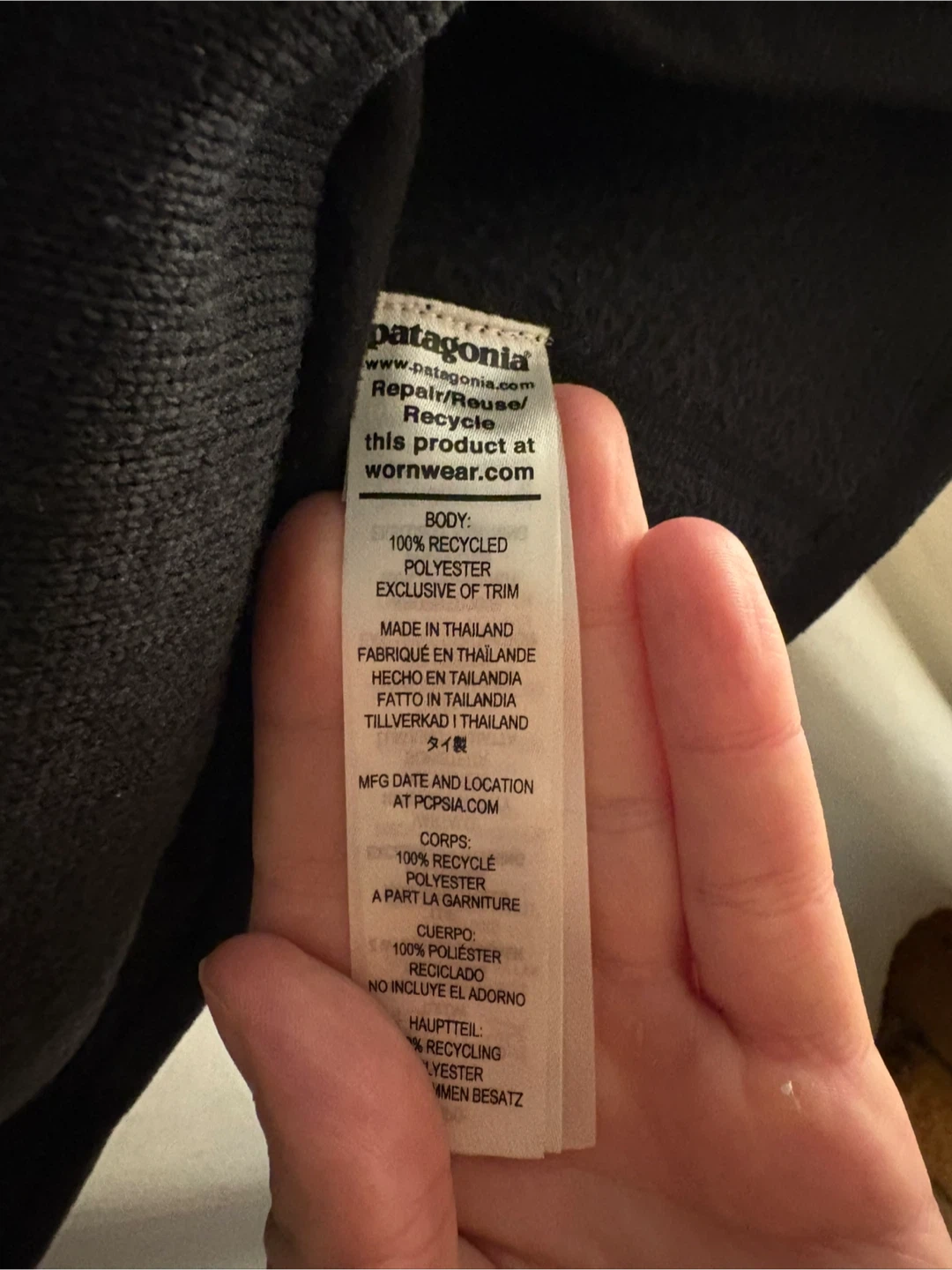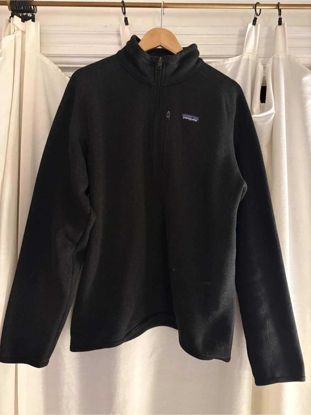 Patagonia black fleece pullover. Made with 100% recycled polyester. Size large. Great for layering during cooler weather!