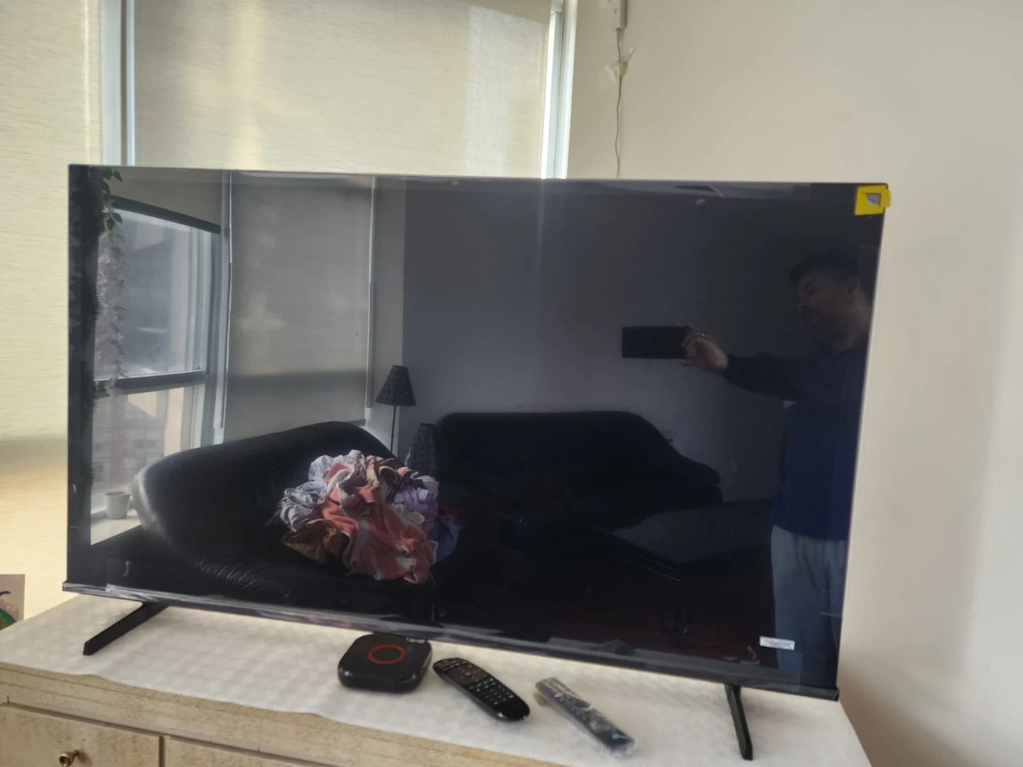 This is a Hisense 55-inch smart TV. It comes with multiple HDMI ports and USB inputs. This TV offers access to streaming apps like Netflix and YouTube.