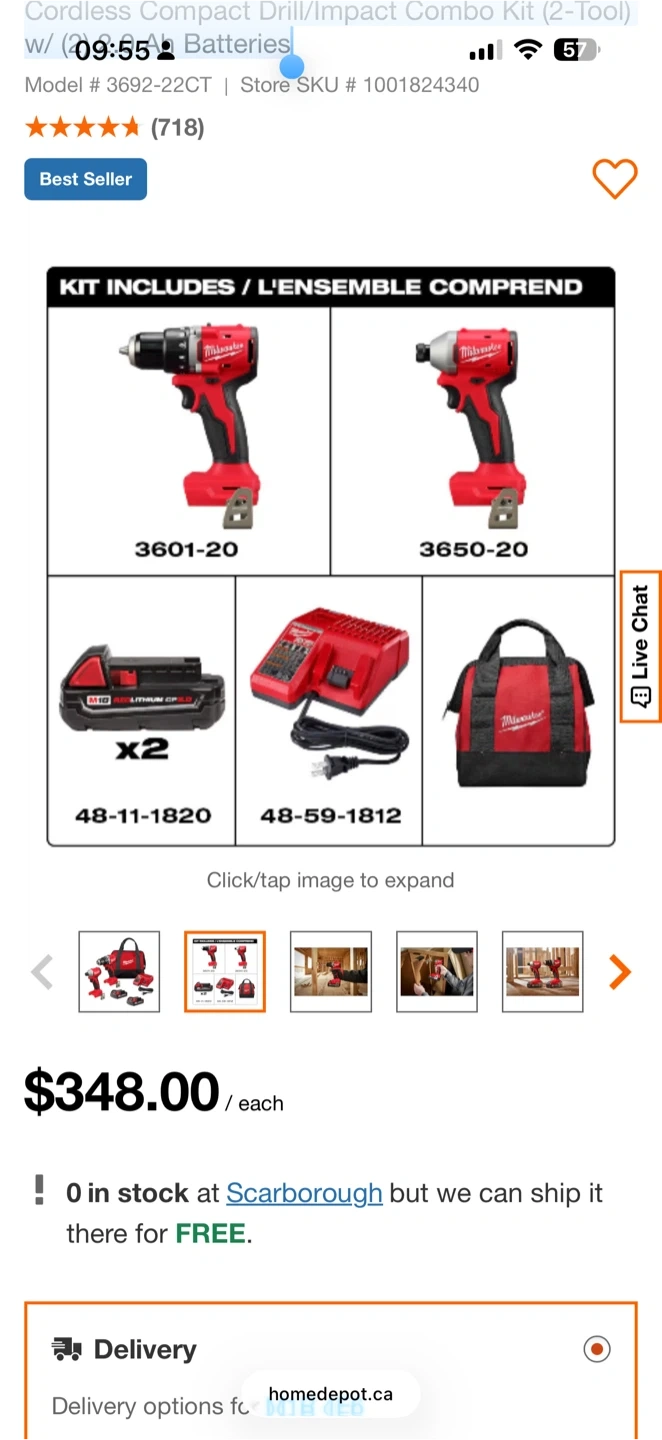 This is the Milwaukee 3692-22CT cordless compact brushless drill/impact combo kit. It includes two batteries, a charger, and a carrying bag.