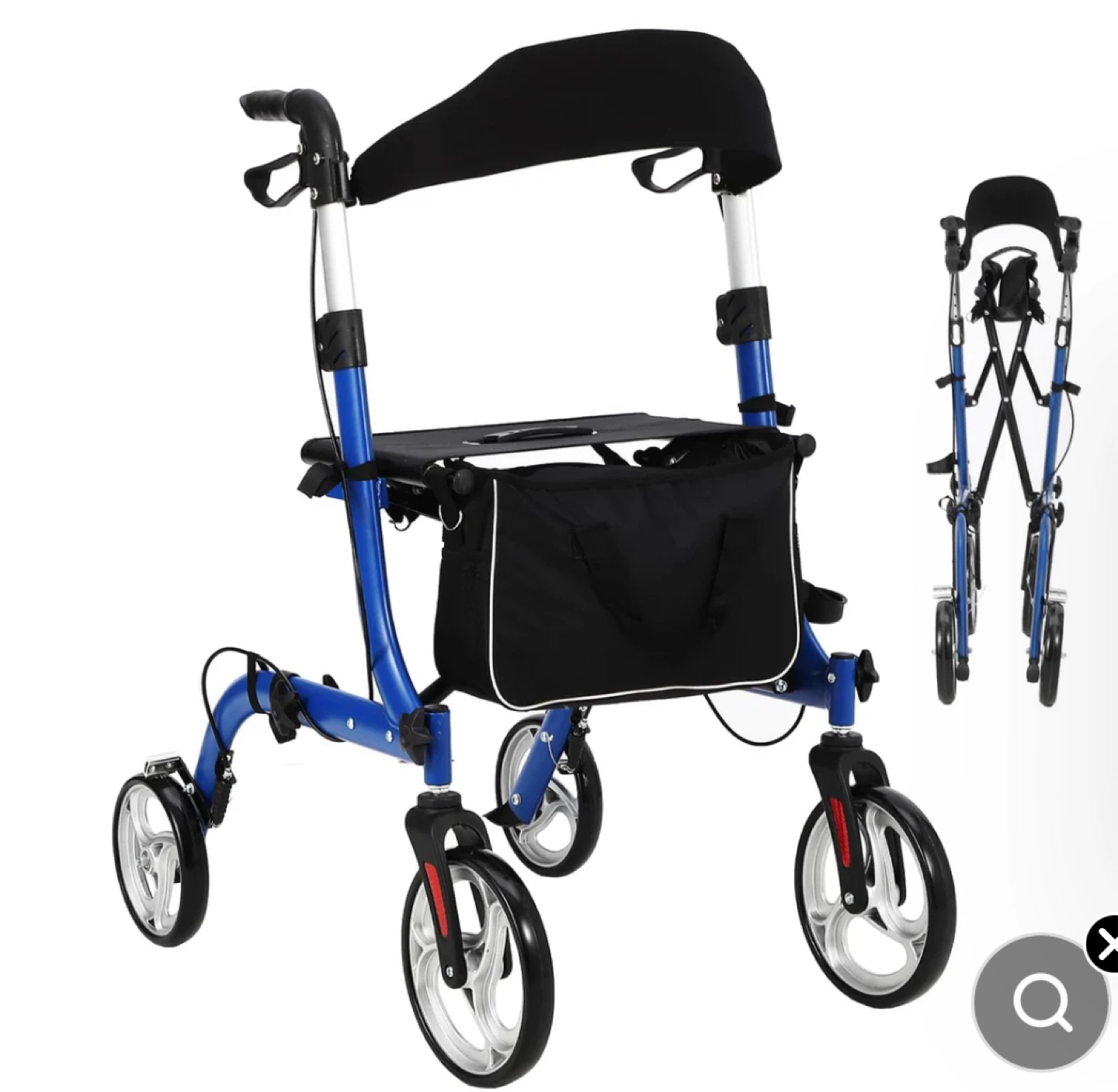 Blue 4-Wheel Walker with Seat and Bag