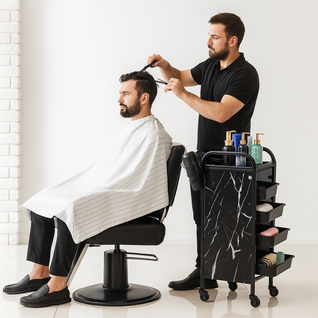 Hairdressing Trolley 5 Layers – Professional Salon, Washroom Storage Cart with Wheels | Black Metal Organizer for Barber Shops, Beauty Parlors & Home Use | Portable Rolling Cart.