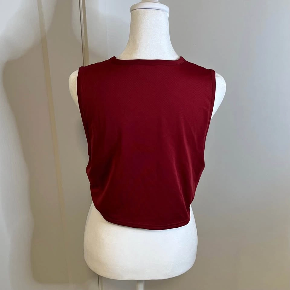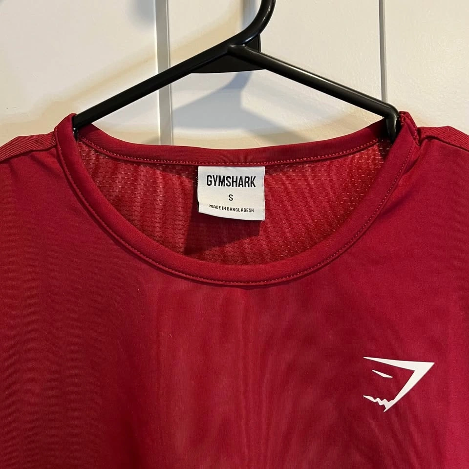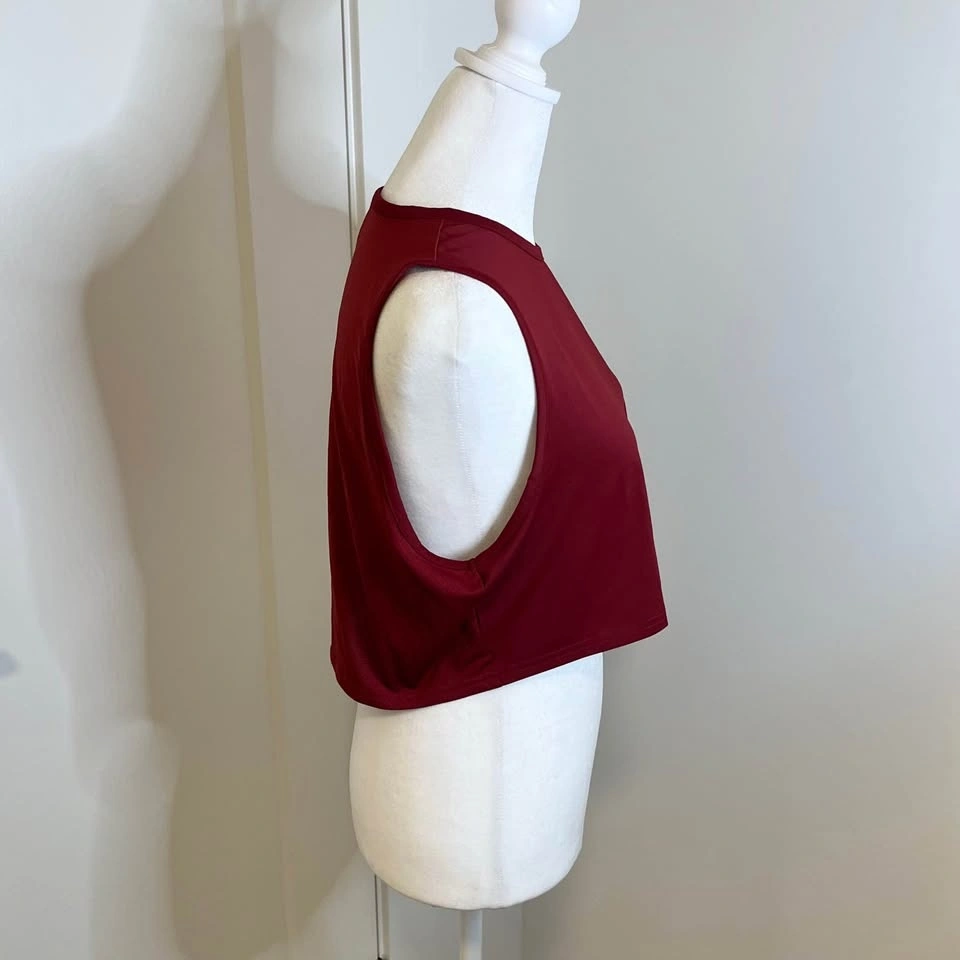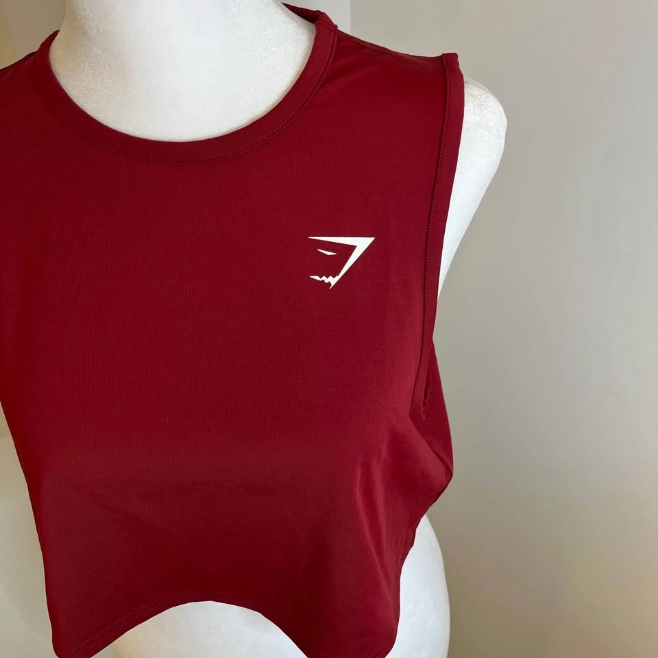 Gymshark women’s jersey style crop top. Deep red colour. High, round neckline. Relaxed fit. Size S.