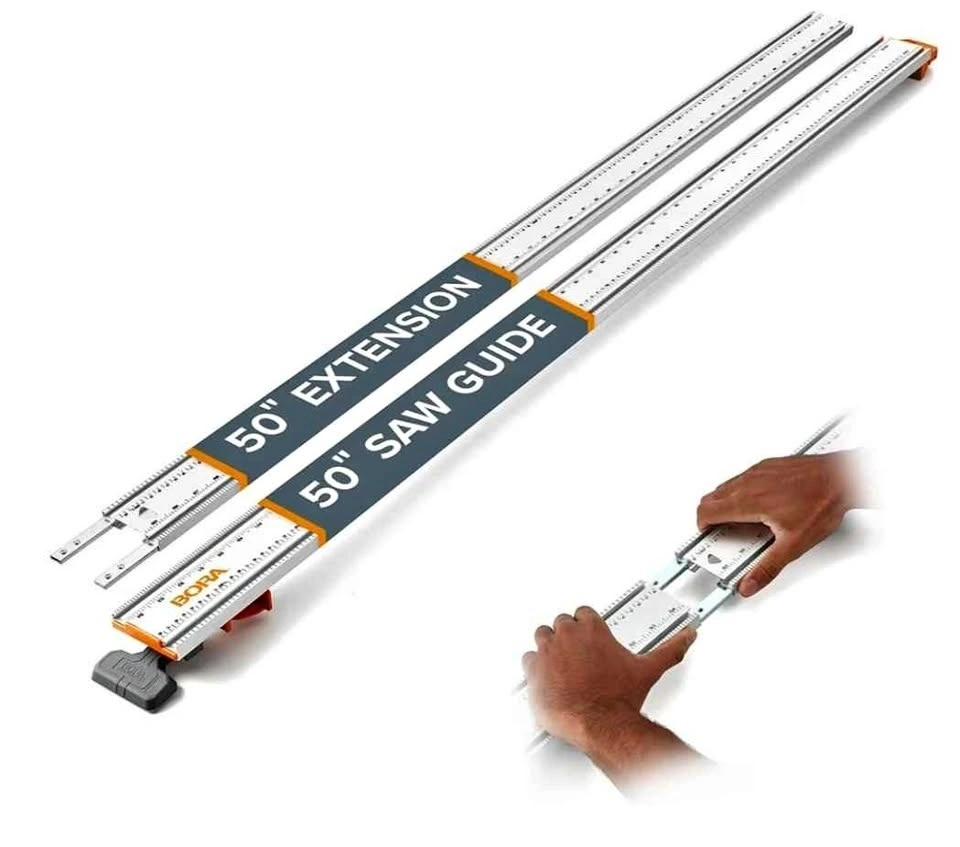 This is the Bora 100 Inch NGX Clamp Edge Straight Cut Guide. It includes a 50-Inch Clamp Edge and a 50-Inch Extension, giving you a total reach of 100 inches for straight cuts with your circular saw. Feel free to message if you have any questions!