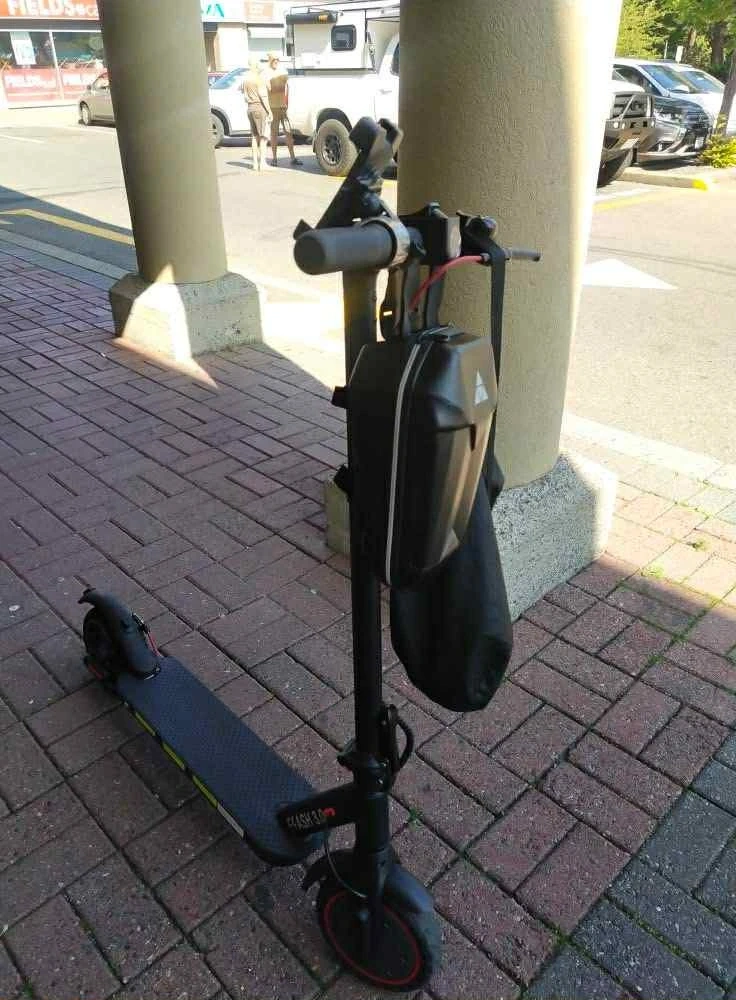 Selling a Flash 3.0 e-scooter. It's black and looks to be in good condition. Comes with a bag attached to the scooter.