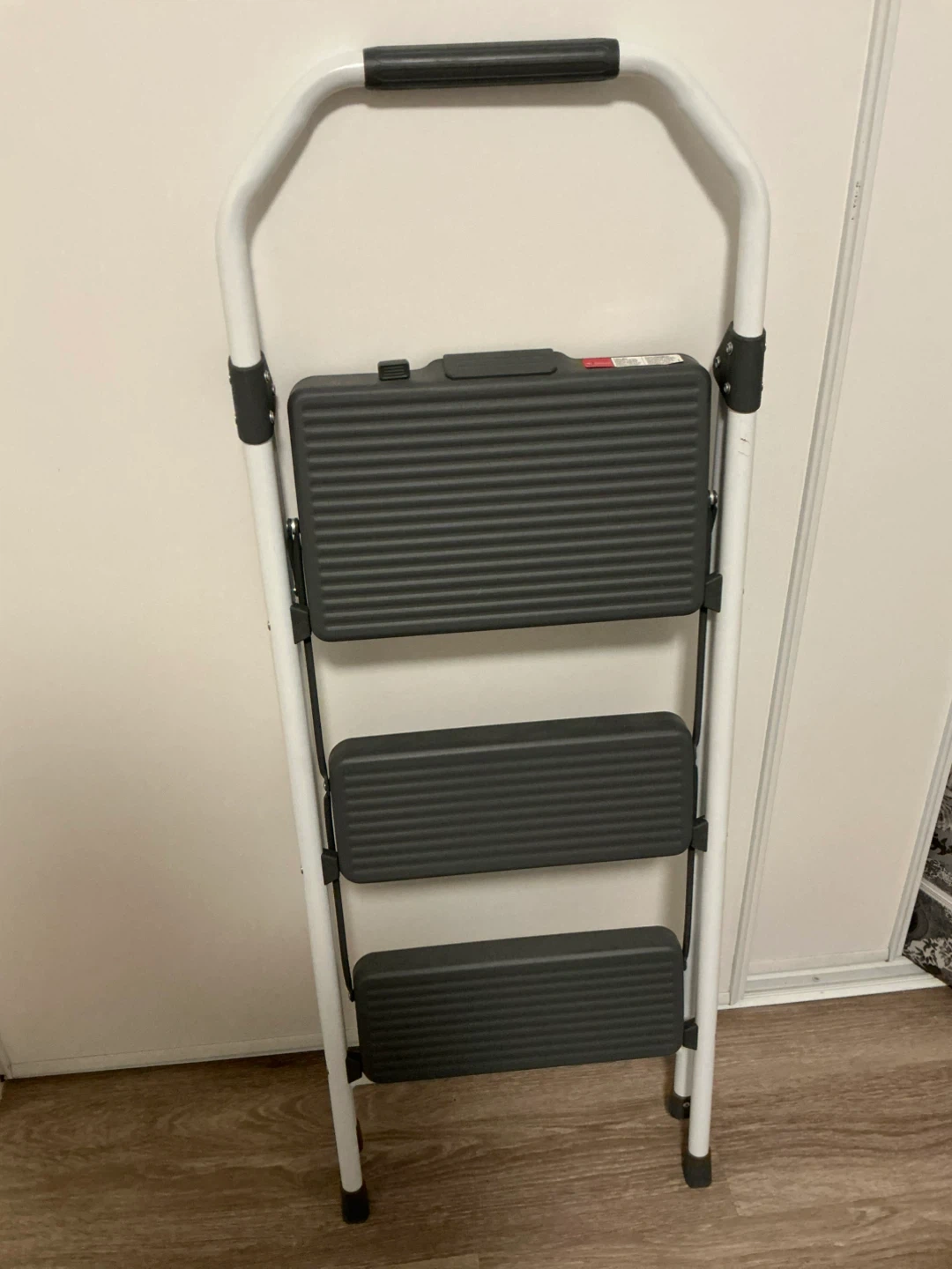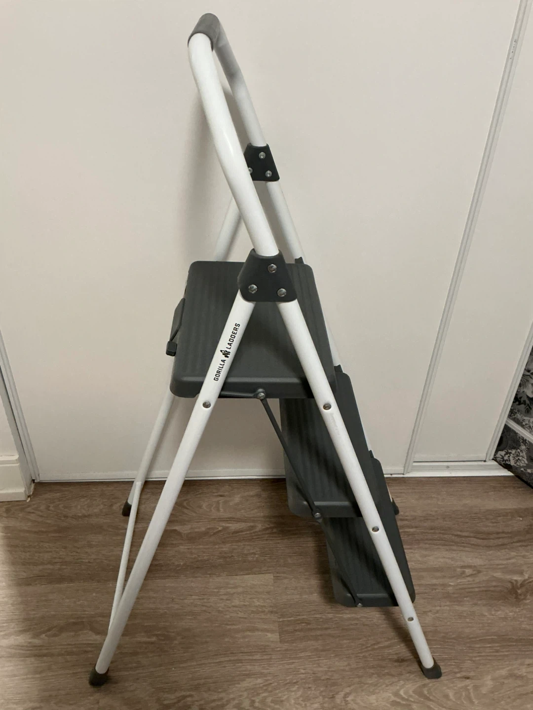 This is a Gorilla Ladder 3-step stepladder. This ladder's great for reaching high shelves or for small DIY tasks around the house. It folds up for easy storage! Brand new never used.