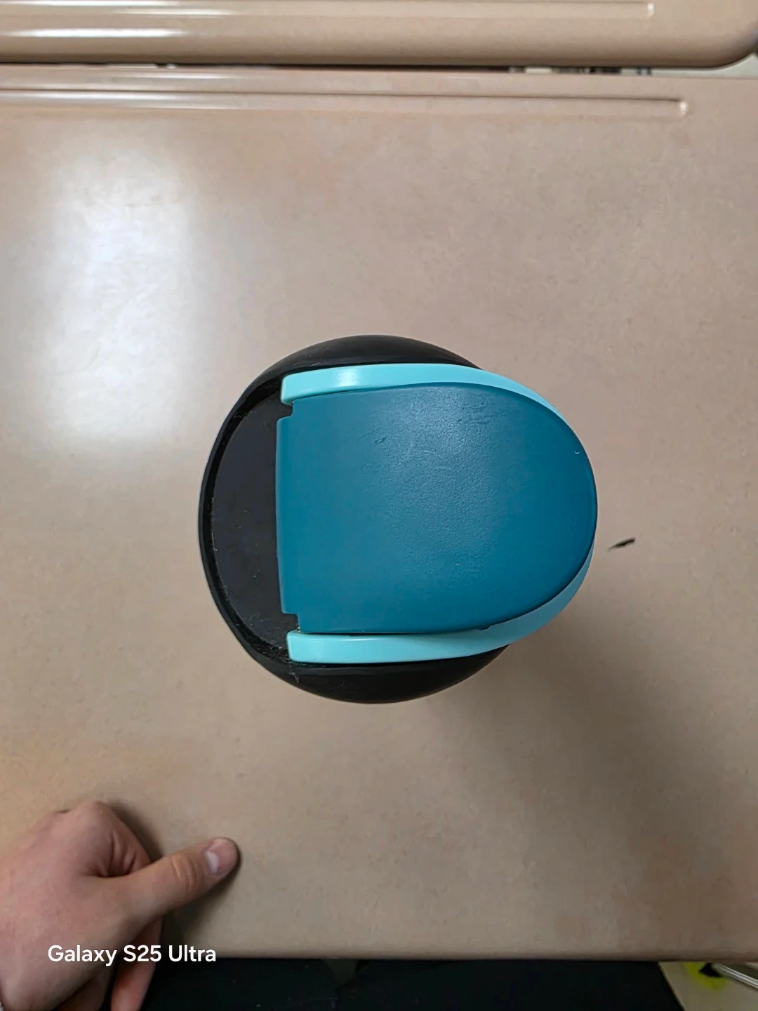 This is an Owala water bottle. It's teal in color and has a unique lid design. It's great for staying hydrated throughout the day!