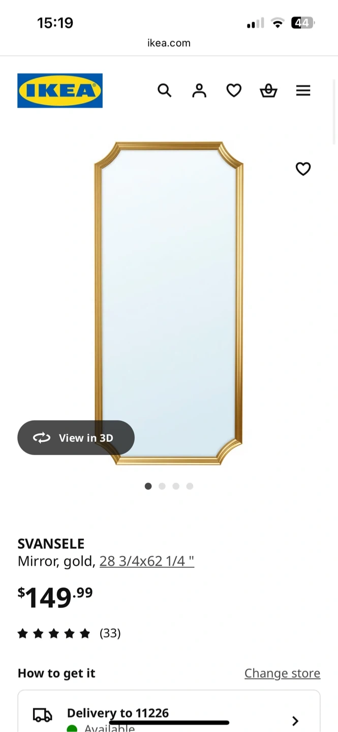 This is a gold framed SVANSELE mirror i got from IKEAs sale section. Dimensions are 28 3/4" x 62 1/4". It's in like new condition, retails for 150