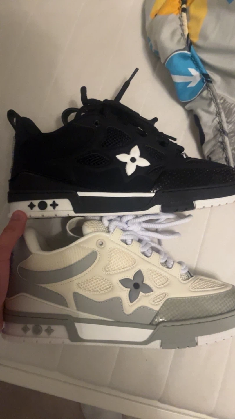 A collection of Balenciaga Runner sneakers in various colourways and two pairs of Louis Vuitton sneakers. Includes black and white/grey Louis Vuitton trainers and multiple Balenciaga options.