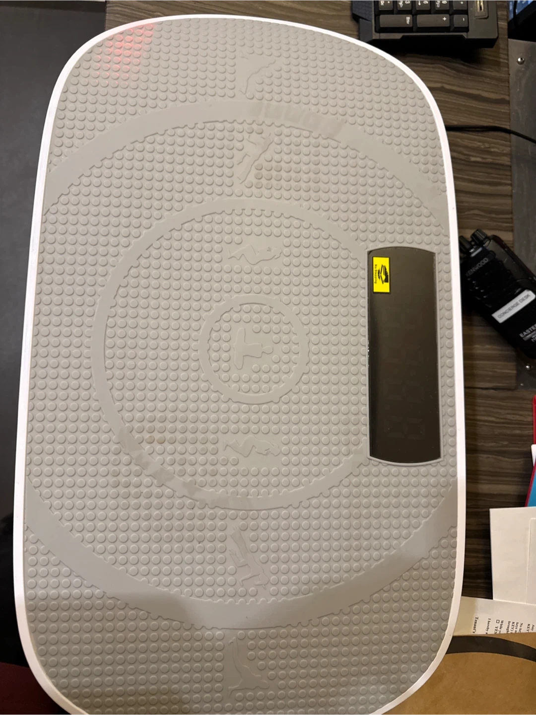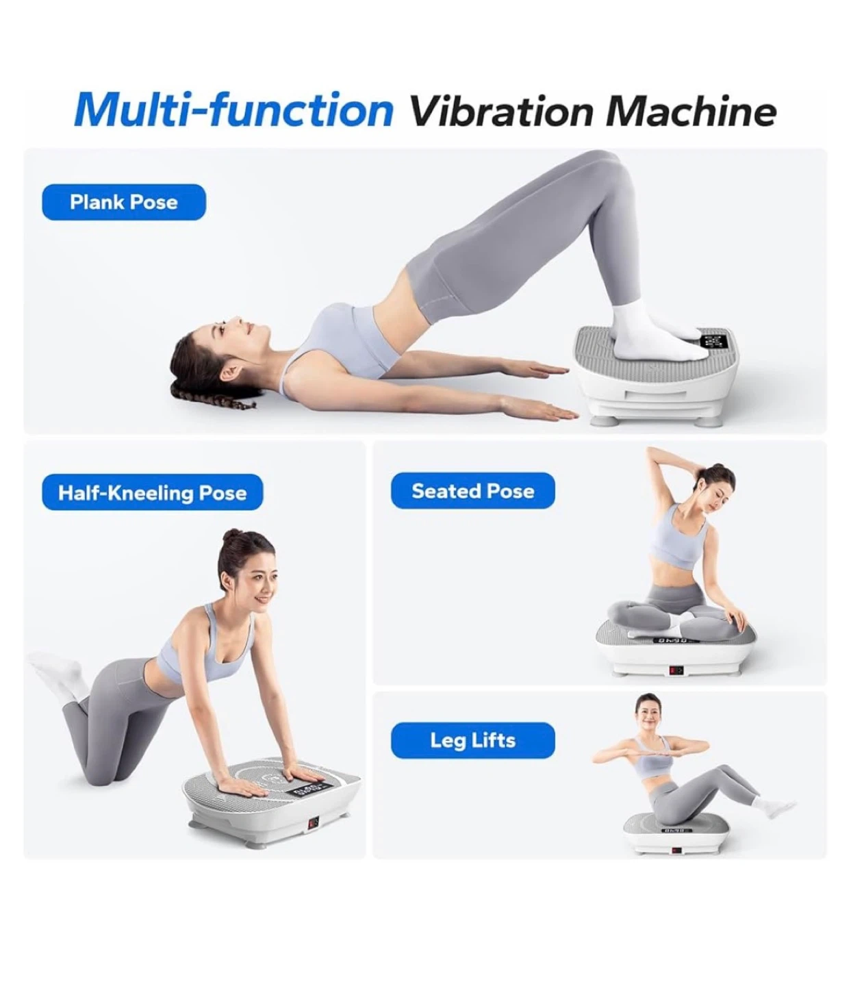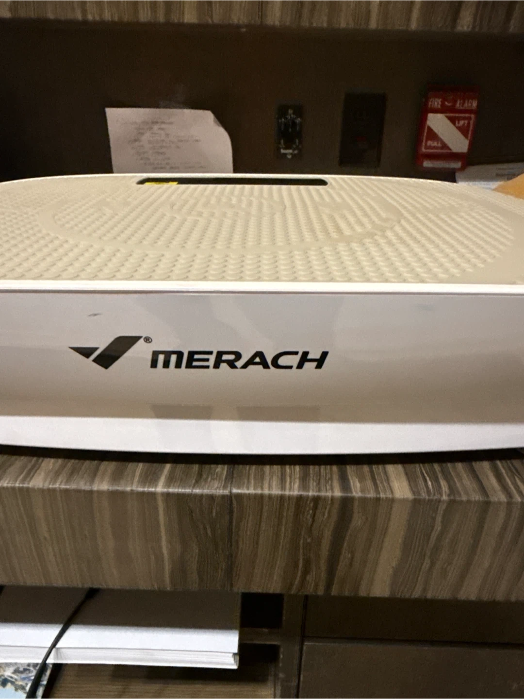 Merach vibration plate in white and gray. This fitness equipment is designed for home workouts. It features a textured surface for stability.