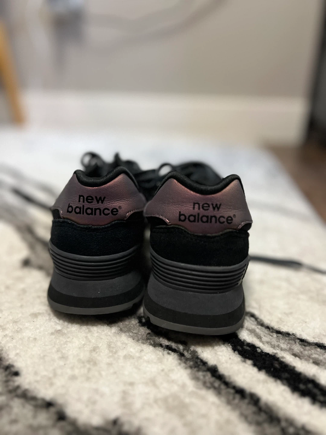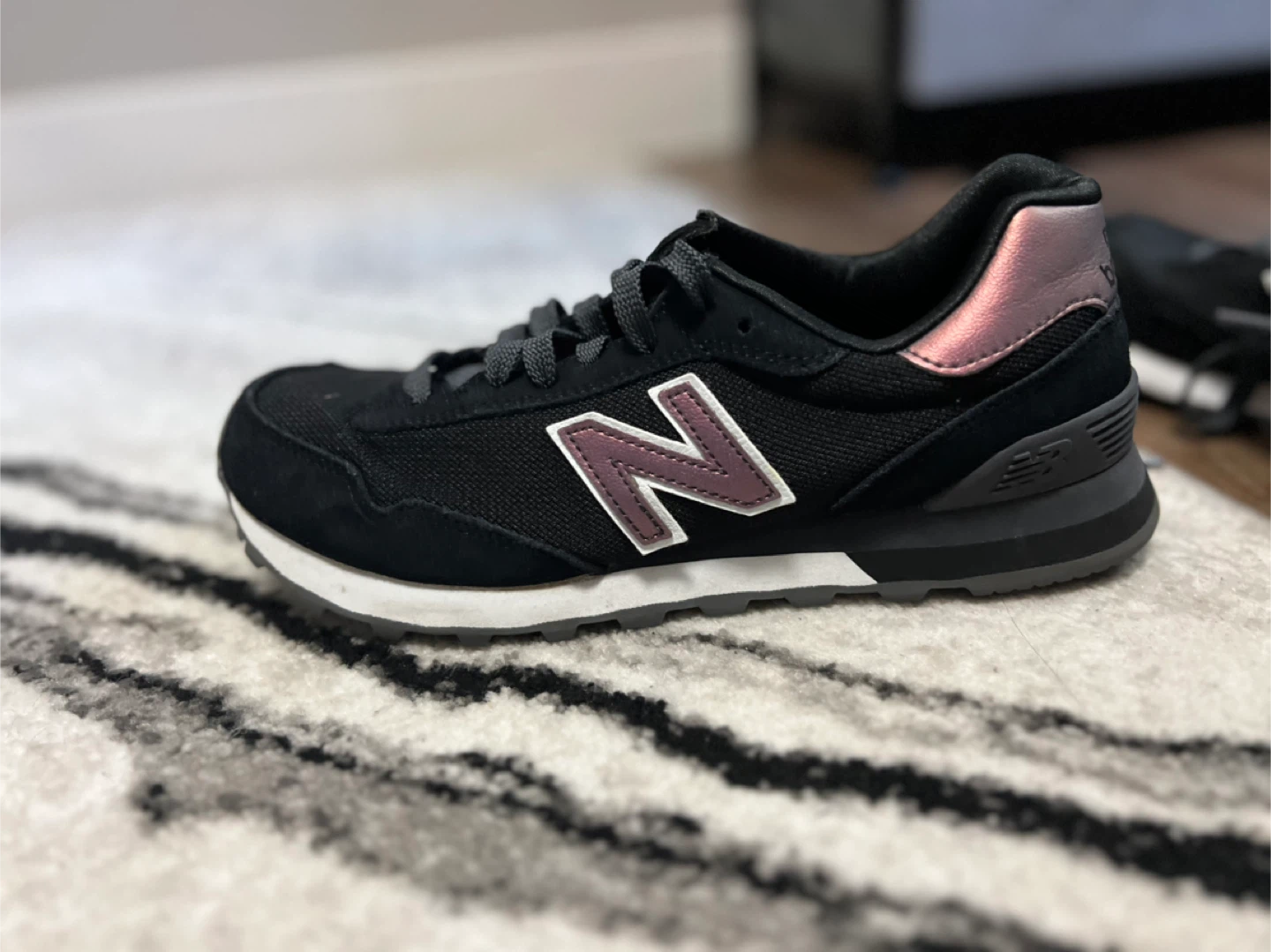 Selling a pair of New Balance 515 sneakers in black. They're in great shape and ready for a new home! Perfect for everyday wear or light workouts. Size is not specified.