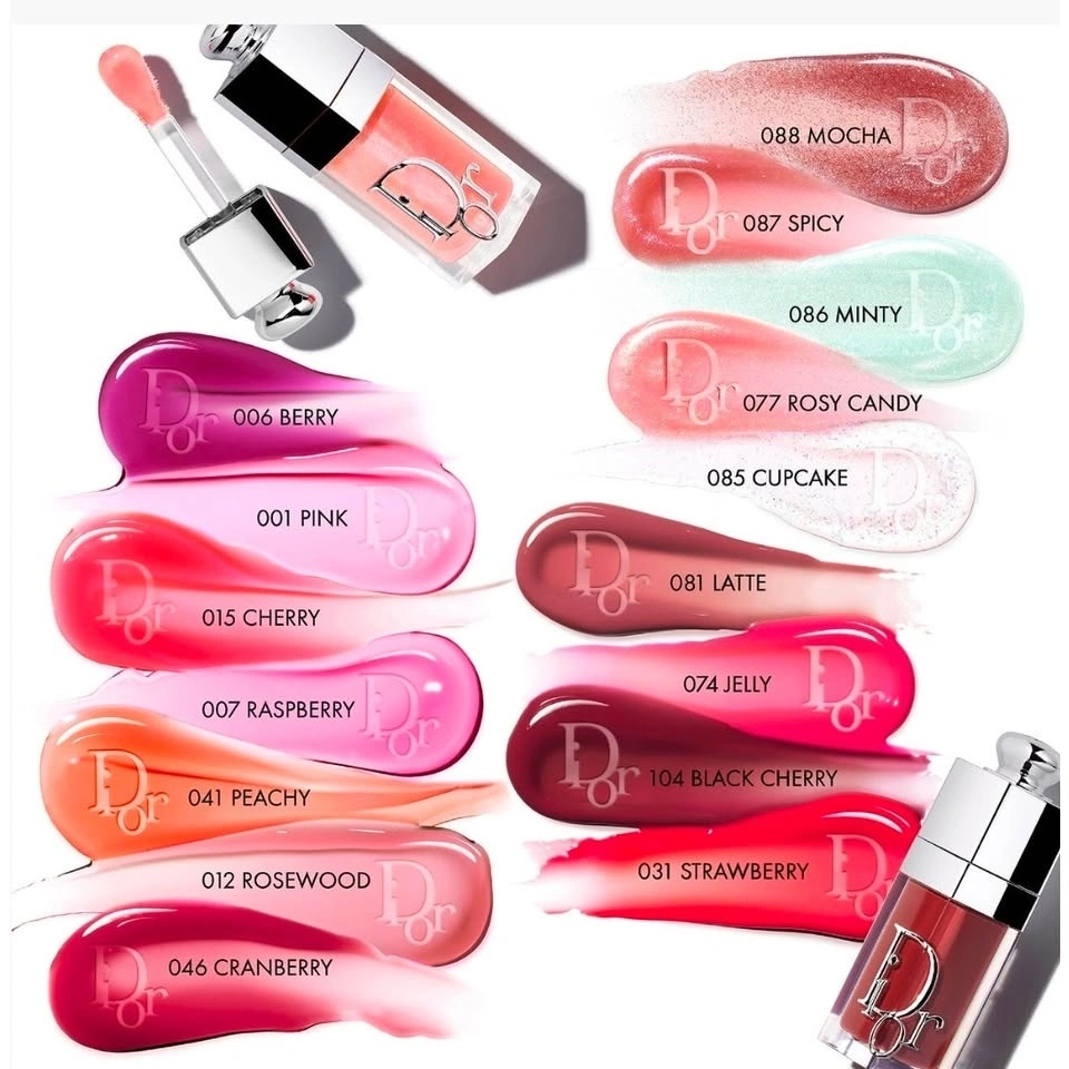 DIOR Addict Lip Glow Oil's innovative formula reacts to the lips' pH level and reveals a custom color. Enriched with nourishing cherry oil, this high-shine lip oil hydrates lips for 24 hours. Its iconic, ultra-soft applicator delivers the perfect dose of shine and coats lips in a highly sensorial texture that smooths lips for 8 hours.