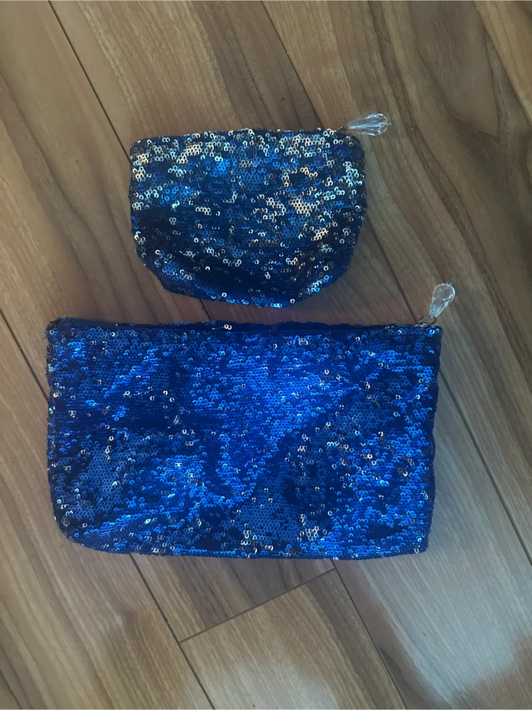 Two cute blue sequin cosmetic bags!