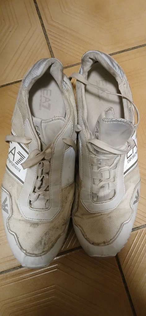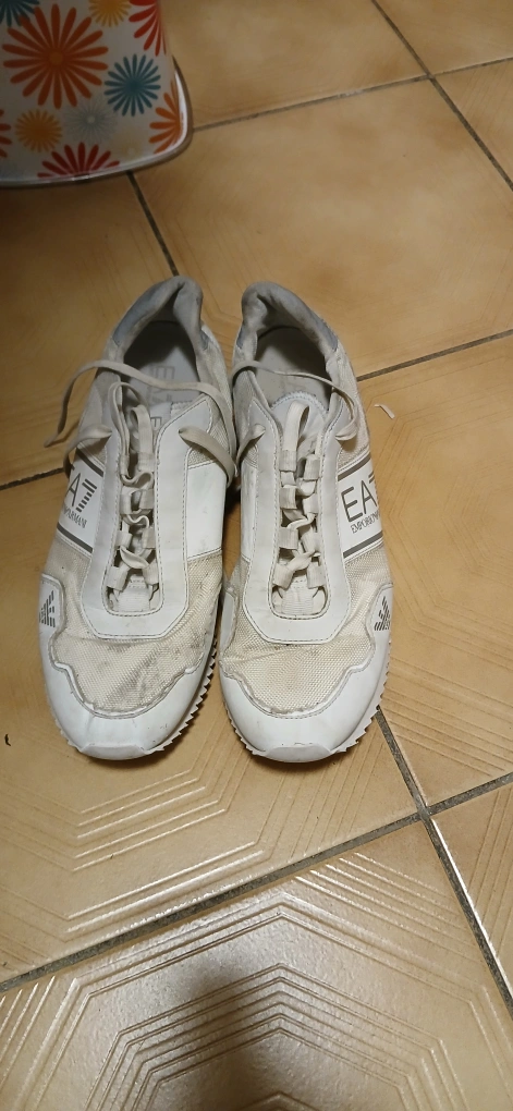 Pre-owned EA7 Emporio Armani sneakers. White colour. Size US 12. Some wear and tear is visible.